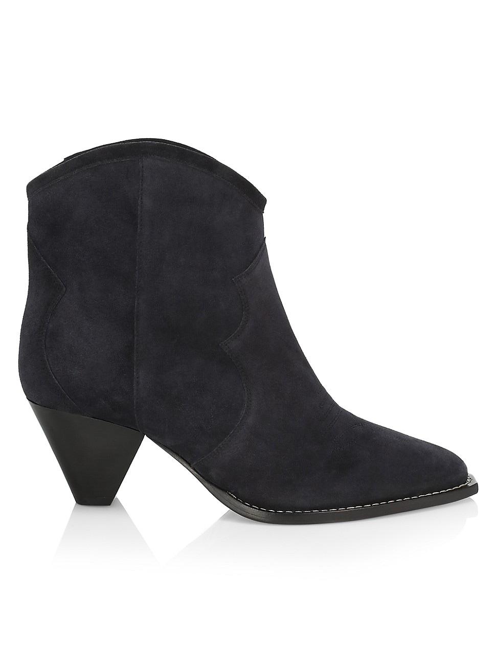 The Darizo boots from Isabel Marant are crafted of smooth suede with a Western flair. Calf leather upper Pointed toe Pull-on style Calf leather sole Made in Portugal SIZE & FIT This brand fits slightly smaller. Consider ordering a half size up. Heel height, 2.25 (60mm) ABOUT THE BRAND Anyone looking for a laid-back blend of bohemian and Parisian-chic knows to turn to Isabel Marant. Since 1994, her namesake label has been the go-to for textured knitwear, flowing dresses and Western-inspired accessories. Womens Shoes - Advanced Womens Designe > Isabel Marant > Saks Fifth Avenue > Barneys. Isabel Marant. Color: Faded Black. Size: 5.