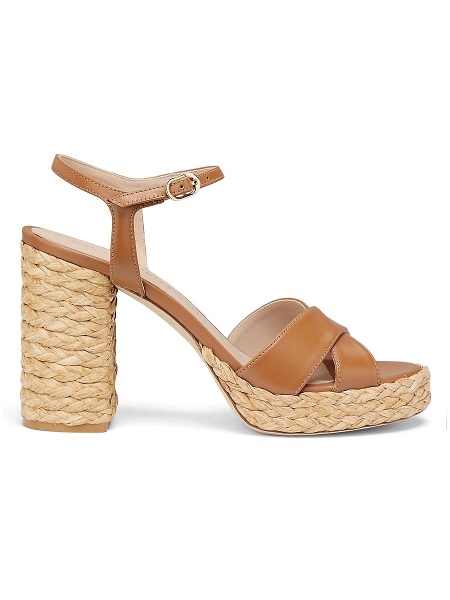 These Dayna platform sandals from Stuart Weitzman are crafted of leather and set atop a 90mm raffia block heel. Open toe Buckle closure Leather upper Leather lining Leather/TPU sole Made in Spain SIZE Block heel: about 3.5 (90mm) Platform: about 0.75 (20mm) ABOUT THE BRAND Designer Stuart Weitzman started his career designing for his fathers shoe company, before launching his own brand in 1986. Known for his glamorous pumps and over-the-knee boots, Weitzman has also incorporated unique materials in his designs, ranging from Lucite and wallpaper to cork, vinyl and even gold. Today, the label continues to create classic, feminine silhouettes that balance both comfort and style. Womens Shoes - Stuart Weitzman Wmn Shoe > Stuart Weitzman > Saks Fifth Avenue > Barneys. Stuart Weitzman. Color: Cream Natural. Size: 9.
