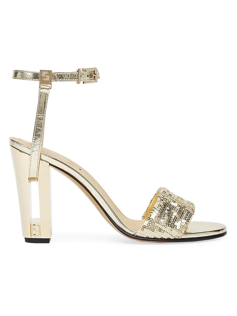 Fendis Delfina sandals are crafted of metallic leather with a sequin-embellished strap that catches the light with every step. The adjustable ankle strap ensures a secure fit, while the leather lining adds a luxurious touch. Open toe Buckle closure Leather upper Leather lining Leather sole Made in Italy SIZE & FIT Cut-out heel: about 3.75 (95mm) ABOUT THE BRAND The epitome of elegance and fine craftsmanship, Fendi was founded in 1925 in Rome by Adele and Edoardo Fendi. Today, Creative Director Kim Jones continues the houses emphasis on quality, tradition, experimentation and creativity. Womens Shoes - Fendi Womens Shoes > Fendi > Saks Fifth Avenue > Barneys. Fendi. Color: Light Gold. Size: 7.