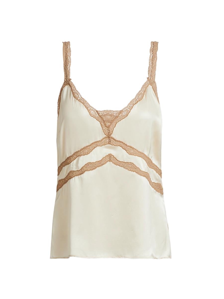 Cami NYCs Delphine camisole is crafted of silk charmeuse with contrast lace trim. V-neck Shoulder straps Pulls over 100% silk Lace: 100% polyamide Dry clean Imported SIZE & FIT About 18 from shoulder to hem Model measurements: 510 tall Model is wearing a US size Small. Contemporary Sportswear - Trend > Cami Nyc > Saks Fifth Avenue > Barneys. Cami NYC. Color: Bone. Size: Medium.