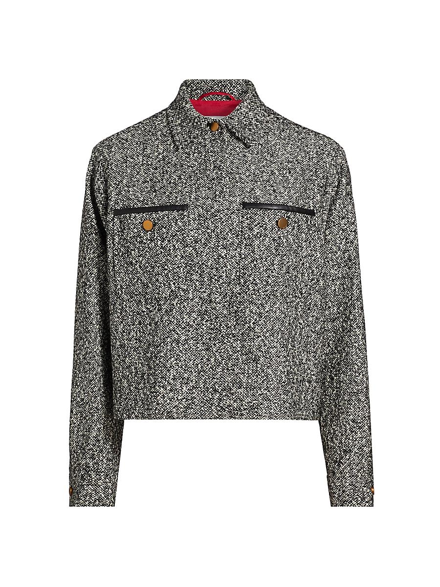 Max Maras Demien jacket is cut in a cropped silhouette featuring a tweed design and leather-trimmed buttoned pockets. Point collar Long sleeves Chest patch pockets Zip-front closure 87% virgin wool/13% polyamide Lining: 65% acetate/35% polyester Dry clean Made in Italy SIZE & FIT Model measurements: 510 tall Model is wearing a US size 4 ABOUT THE BRAND Max Maras history of impeccable tailoring dates back to 1850, when founder Achille Maramottis great-grandmother owned a fashion atelier in Italy. Since its official launch in 1951, incredible craftsmanship has remained an integral part of the labels heritage. Under Creative Director Ian Griffiths, the aesthetic of timeless silhouettes in luxe fabrics continues with sharp suiting, lush wrap coats and sleek accessories. Designer Lifestyle - Max Mara > Max Mara > Saks Fifth Avenue > Barneys. Max Mara. Color: Black White. Size: 8.