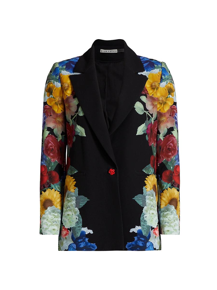 This Denny floral boyfriend blazer from Alice + Olivia is tailored for a structured yet relaxed fit, featuring notch lapels, long sleeves, and a button-front closure. Notch lapels Long sleeves Button-front closure 97% polyester/3% elastane Lining: 100% polyester Dry clean Imported SIZE & FIT Tailored fit About 29 from shoulder to hem Model measurements: 510 tall Model is wearing a US size 4 ABOUT THE BRAND Founder Stacey Bendet has been embracing bold color, eclectic prints and an overall passion for whimsy since launching Alice + Olivia in 2002. From party-ready dresses to statement tops and everything in between, shes created a playful and overtly feminine aesthetic thats uniquely her own. Contemporary Sportswear - Alice + Olivia > Alice + Olivia > Saks Fifth Avenue > Barneys. Alice + Olivia. Color: Garden Brunch Black. Size: 10.