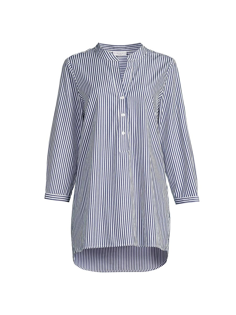 Crafted of striped cotton, this Derrington tunic from Harshman is styled with a stand collar, three-quarter-length sleeves, and a relaxed fit. Stand collar Three-quarter-length sleeves, button cuffs Shirttail hem Button-front closure 100% cotton Machine wash Imported SIZE & FIT About 29 from shoulder to hem Model measurements: 510 tall Model is wearing a US size Small. Modern Collections - Branded Separates > Harshman > Saks Fifth Avenue > Barneys. Harshman. Color: Navy Stripes. Size: Large.