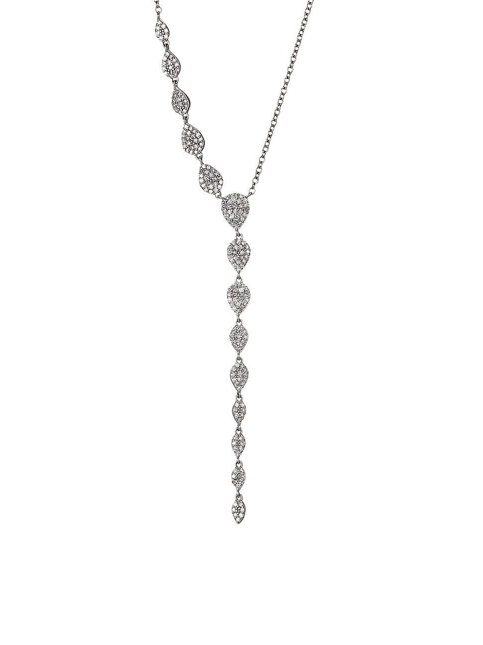 Timelessly elegant y-necklace updated with an asymmetrical, graduating design. Diamonds, 1.44 tcw Diamond color: I Diamond clarity: SI1 Black rhodium-plated silver Lobster clasp Imported SIZE Length, 16 with 3 extender. Fashion Jewelry - Semi Prec Coll C > Nina Gilin > Saks Fifth Avenue > Barneys. Nina Gilin. Color: Silver.