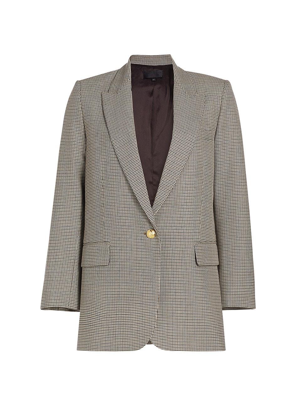 Crafted of suiting virgin wool, Nili Lotans Diane blazer highlights a micro houndstooth print and peak lapels. Side flap pockets and a single goldtone button finish the straight-fit piece. Peak lapels Long sleeves, button cuffs Side flap pockets Button-front closure 100% virgin wool Dry clean Made in USA SIZE & FIT Model measurements: 510 tall Model is wearing a US size 4. Designer Lifestyle - Nili Lotan > Nili Lotan > Saks Fifth Avenue > Barneys. Nili Lotan. Color: Brown. Size: 2.