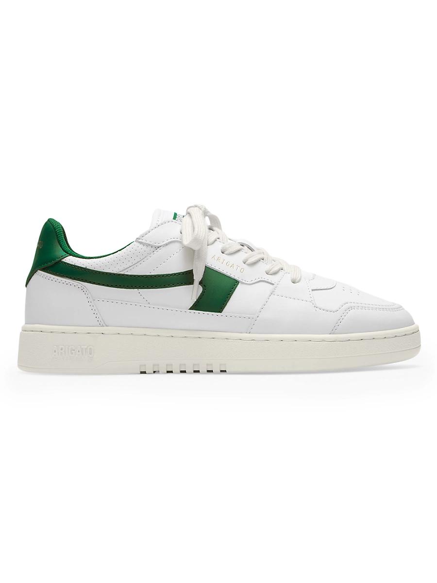 Axel Arigatos Dice-A low-top sneakers are designed with a round toe, lace up styling, and a rubber sole. Round toe Lace-up style Leather/suede/polyester upper Polyester/polyurethane/polyamide lining Rubber sole Made in Portugal. Womens Shoes - Contemporary Shoes > Axel Arigato > Saks Fifth Avenue > Barneys. Axel Arigato. Color: White Green. Size: 7.
