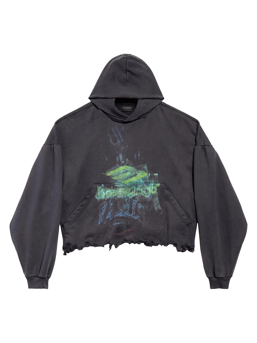 Dry fleece Hood without drawstring Dropped shoulders 1 kangaroo pocket on front Gathered at cuffs and waistline DIY Imprint artwork printed at front and back Frayed hem Main Material: 100% Cotton Made in Portugal. Lsd Rtw - Balenciaga Rtw > Balenciaga > Saks Fifth Avenue > Barneys. Balenciaga. Color: Black Faded. Size: Small.