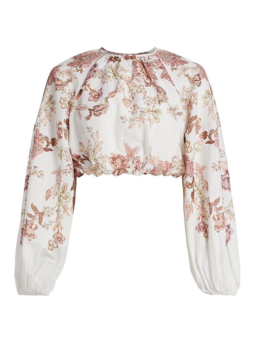 From the Diza Collection. Crafted of a light blend of cotton and linen, Hemant & Nanditas top features a bright floral print, bubbled hem, and long blouson sleeves. Round neck Long blouson sleeves, elasticized cuffs Bubble hem Pulls over 55% linen/45% cotton Lining: 100% cotton Dry clean Imported SIZE & FIT About 18 from shoulder to hem Model measurements: 510 tall Model is wearing a US size Small. Contemporary Sportswear - Trend > Hemant & Nandita > Saks Fifth Avenue. Hemant & Nandita. Colo