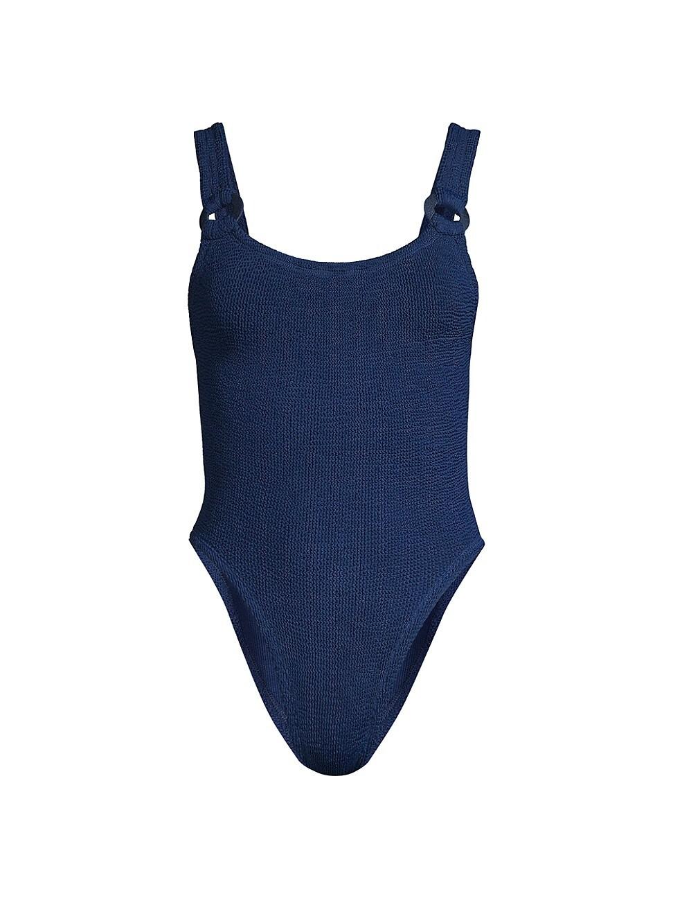 Hunza Gs one-piece Domino swimsuit features a plunging scoop neckline and tonal circle inserts at the front tank straps. Plunging scoopneck and scoopback Tank straps Front circle inserts Pulls on 97% polyamide 3% elastane Machine wash Imported SIZE & FIT Model measurements: 510 tall Please note: This item is one size. Outerwear And Swimwear - Contemporary Swim > Hunza G > Saks Fifth Avenue > Barneys. Hunza G. Color: Navy.