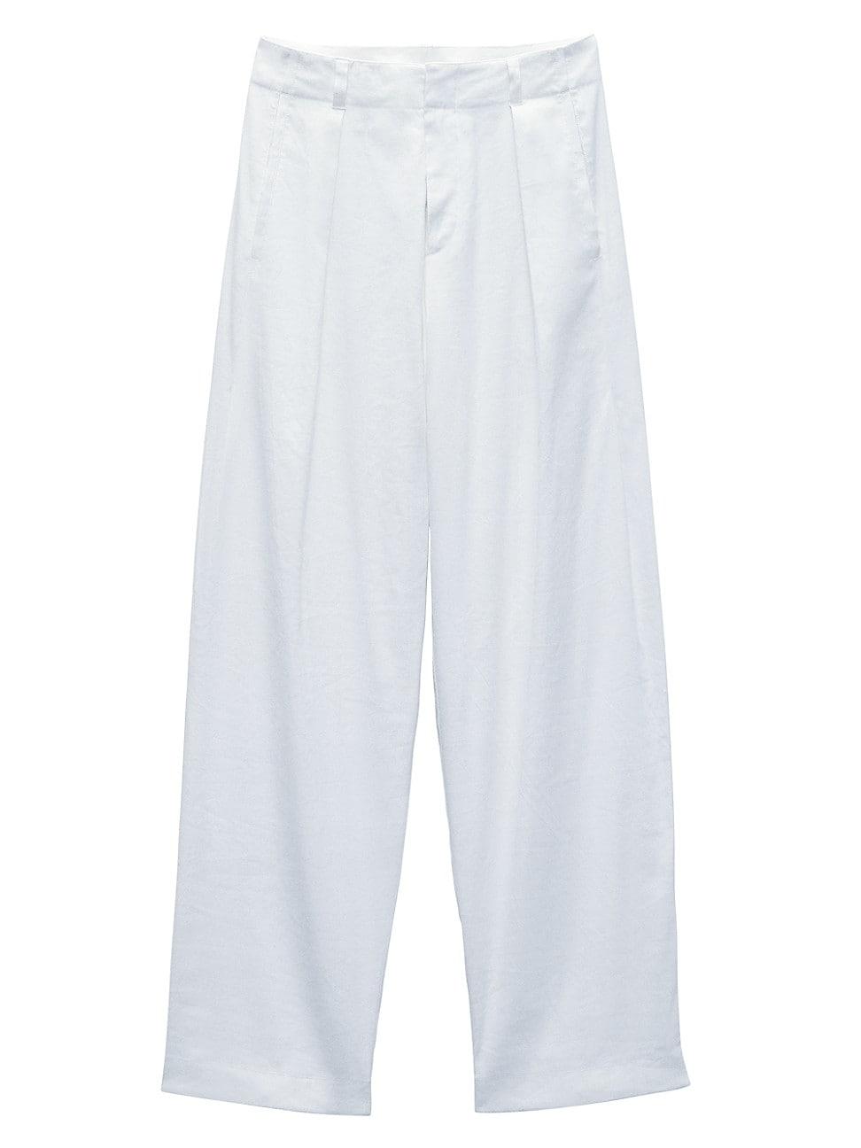 A wide-leg silhouette adds casual swagger to these wear-everywhere pants cut from a breathable linen blend. 30 1/2 inseam; 18 1/2 leg opening; 12 3/4 front rise (size 4) Zip fly with hook-and-bar closure Front slant pockets; back welt pocket Stretch lining 52% linen, 46% rayon, 2% spandex Dry clean Imported