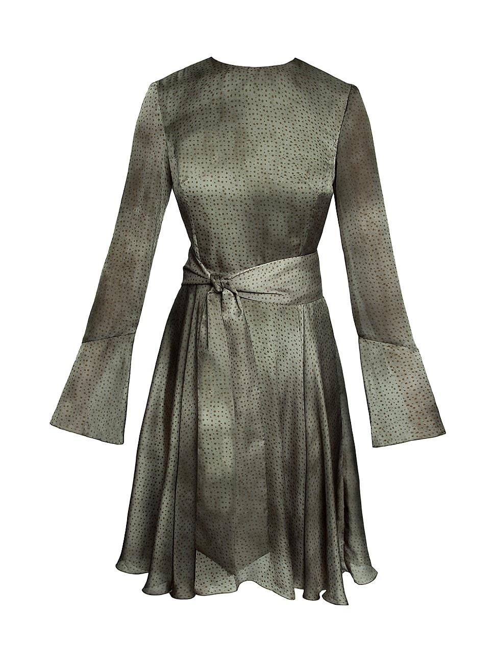 Crafted of dot-printed georgette, this fit-and-flare dress from Santorelli is styled with a crewneck, long flared sleeves, and a self-tie belt. Crewneck Long sleeves, flared cuffs Self-tie belt Back zip closure 100% polyester Lining: 100% polyester Dry clean Made in Italy SIZE & FIT About 34 from shoulder to hem Model measurements: 510 tall Model is wearing a US size 4. Modern Collections - Modern Coll > Santorelli > Saks Fifth Avenue > Barneys. Santorelli. Color: Deep Sage. Size: 8.