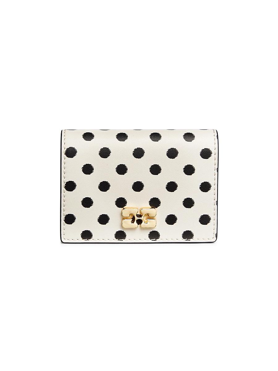 This Ganni card holder is adorned with a playful dot print. Made with recycled leather Interior: one compartment and one slip pocket Flap with snap closure Recycled leather/polyurethane/polyester Imported SIZE About 4L x 1W x 3H. Handbags - Collection Handbags > Ganni > Saks Fifth Avenue > Barneys. Ganni. Color: Egret.
