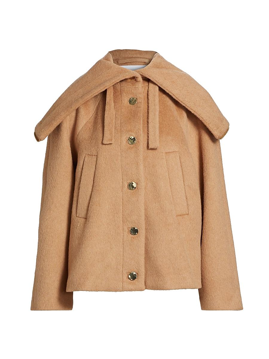 Crafted of wool, this Double Face jacket from Ganni features an oversized spread collar with a zip detail, side welt pockets, and a button-front closure. Oversized spread collar Long sleeves Side welt pockets Button-front closure 100% wool Lining: 70% wool/15% acetate/10% lyocell/5% polyester Dry clean Imported SIZE & FIT About 27 from shoulder to hem Model measurements: 510 tall Model is wearing a US size Small. Contemporary Sportswear - Contemporary Collections > Ganni > Saks Fifth Avenue > Barneys. Ganni. Color: Latte. Size: Small.