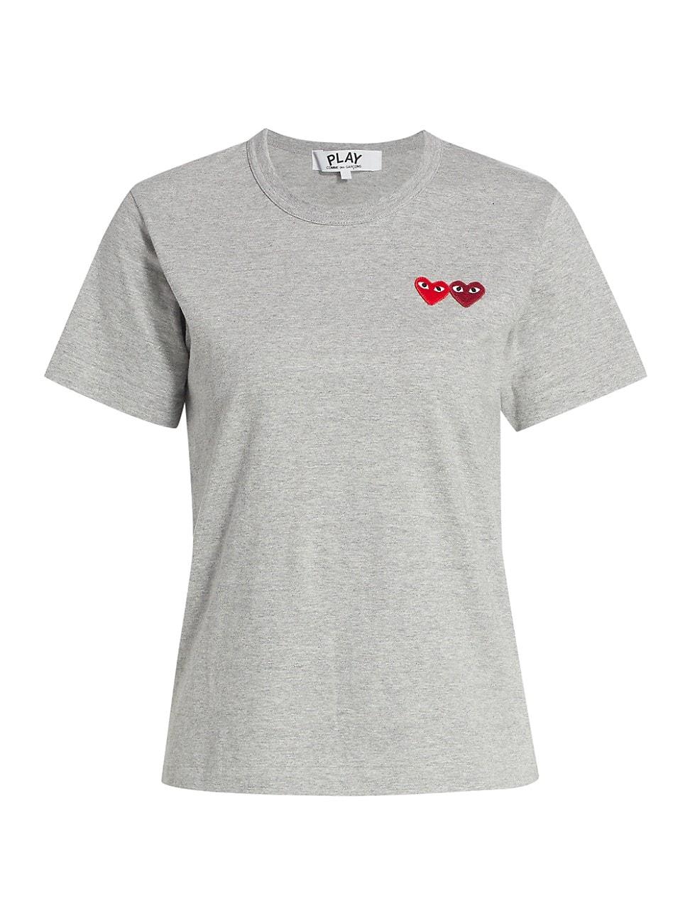 This slim heathered tee features the brands double heart embroidery at the chest. Roundneck Short sleeves Pullover style Embroidered heart Cotton Dry clean Made in Japan SIZE & FIT About 24 from shoulder to hem Model measurements: 510 tall Model is wearing a US size Small. Advanced Designer - Designer Collections > Comme Des Garons Play > Saks Fifth Avenue > Barneys. Comme des Garons PLAY. Color: Grey. Size: XS.