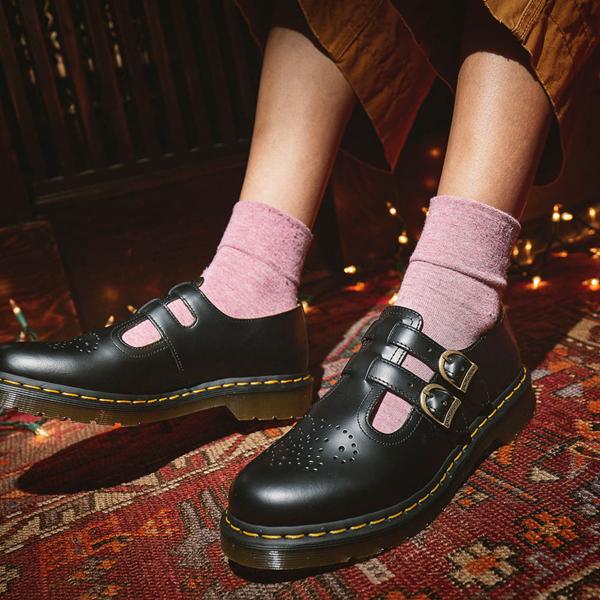 From Dr. Martens, the 8065 Mary Jane Buckle Leather Shoes feature:Leather upper Two adjustable buckle closuresDecorative brouging & horseshoe buckle detailsLeather liningClassic Docs DNA, including grooved edges and visible stitchingBuilt on the iconic Dr. Martens air-cushioned sole, which is oil and fat resistant with good abrasion and slip resistanceImported.