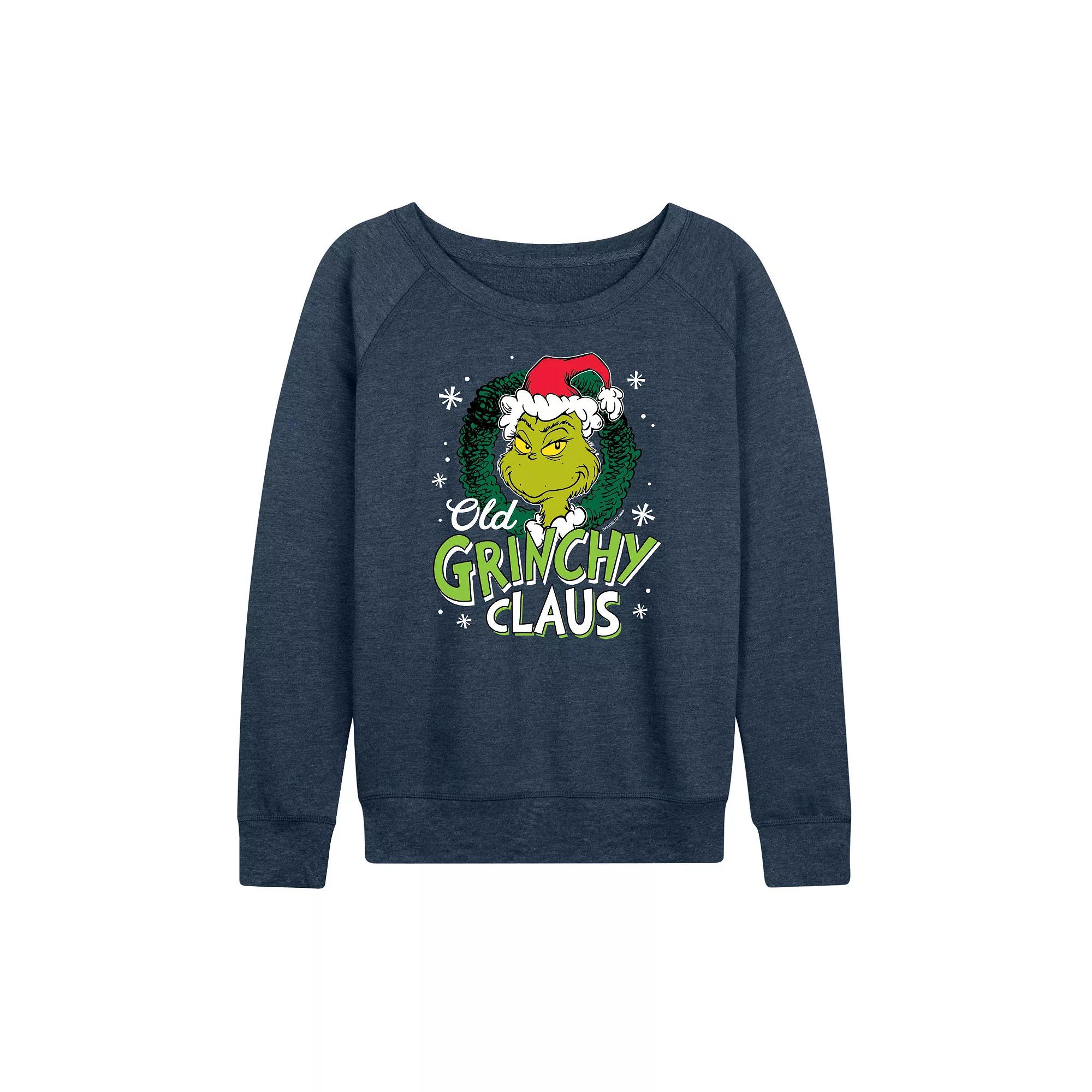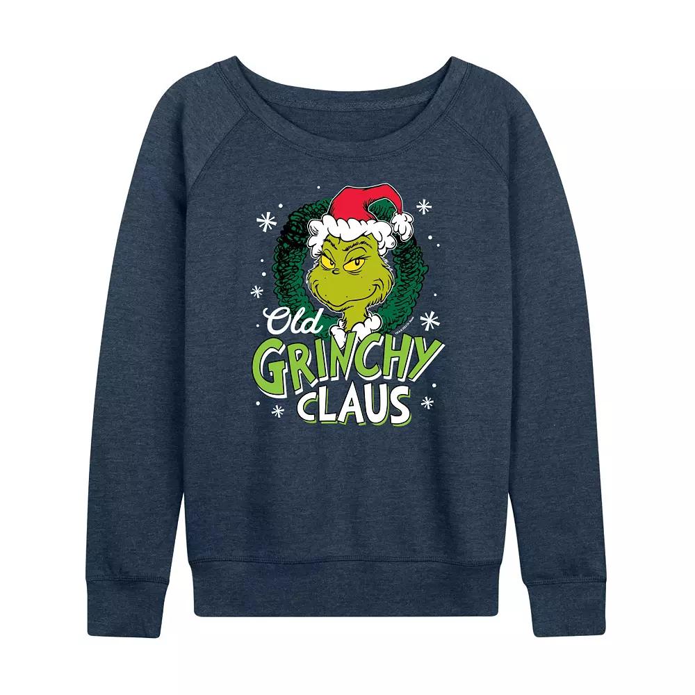 Women's Dr. Seuss Old Grinchy Claus French Terry Long Sleeve Tee,