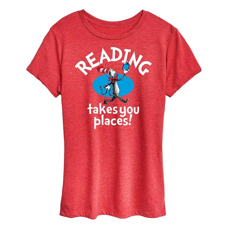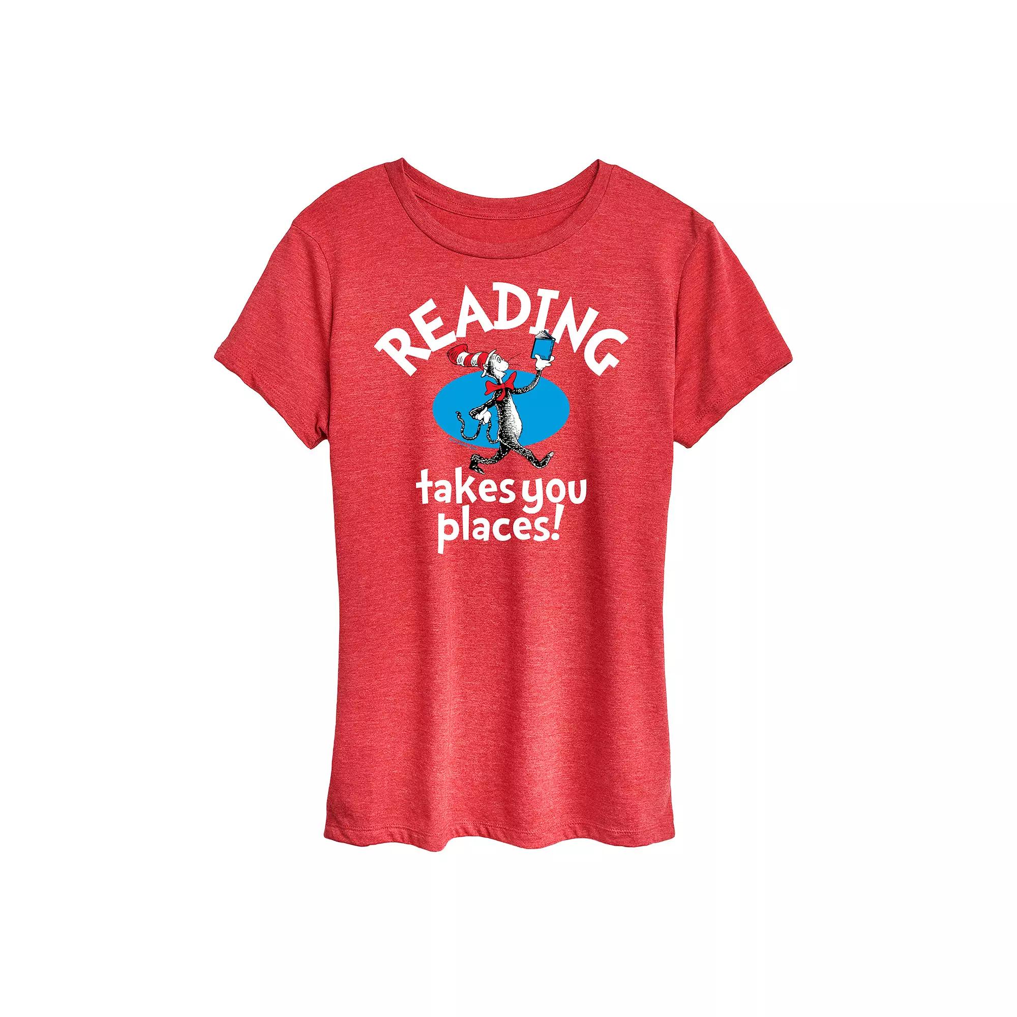 She will love showing off her style with this Womens Dr. Seuss Reading Graphic Tee. FEATURES Short sleeves CrewneckFABRIC & CARE Solid Color: Cotton ; Heather Colors: Cotton/Polyester Machine wash Imported Size: Medium. Color: Red. Gender: female. Age Group: adult.