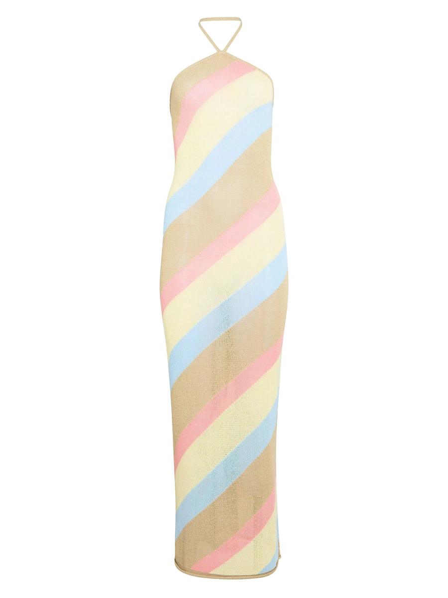 Knit, halter neck maxi dress in a multi-colored stripe pattern. 39% Linen, 31% Cotton, 30% Nylon Imported Model is 510 wearing size S. Lsd Rtw - Womens Rtw Lsd Mp > Ser.o.ya > Saks Fifth Avenue > Barneys. Ser.o.ya. Color: Yellow Peach Stone Ice. Size: Small.