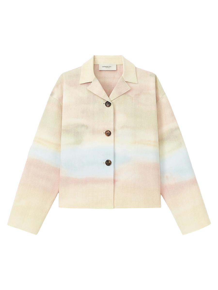 Lafayette 148 New Yorks dropped shoulder jacket showcases a cropped design and dyed horizon finish. Notch collar Long sleeves Button-front closure 60% cotton/25% polyester/15% acrylic Dry clean Imported SIZE & FIT About 22 from shoulder to hem Model measurements: 510 tall Model is wearing a US size Small ABOUT THE BRAND Named after its original address, Lafayette 148 New York was founded in 1996 with the intention to create an inclusive line of beautifully crafted clothing for women. The labels sophisticated designs are a result of top-of-the-line fabrics, clean silhouettes and superior craftsmanship. Designer Lifestyle - Lafayette 148 > Lafayette 148 New York > Saks Fifth Avenue > Barneys. Lafayette 148 New York. Color: Straw Multi. Size: Medium.