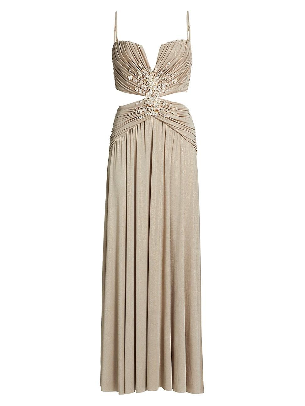 PatBOs Dune gown features an exquite drape accented with intricate beading and side cut outs. Split sweetheart neck Spaghetti straps Side cut outs Back zip closure 95% polyester/5% elastane Lining: 87% polyamide/13% elastane Dry clean Imported SIZE & FIT About 60 from shoulder to hem Model measurements: 510 tall Model is wearing a US size 4. Contemporary Sportswear - Contemporary Collections > Patbo > Saks Fifth Avenue > Barneys. PatBO. Color: Beige. Size: 10.