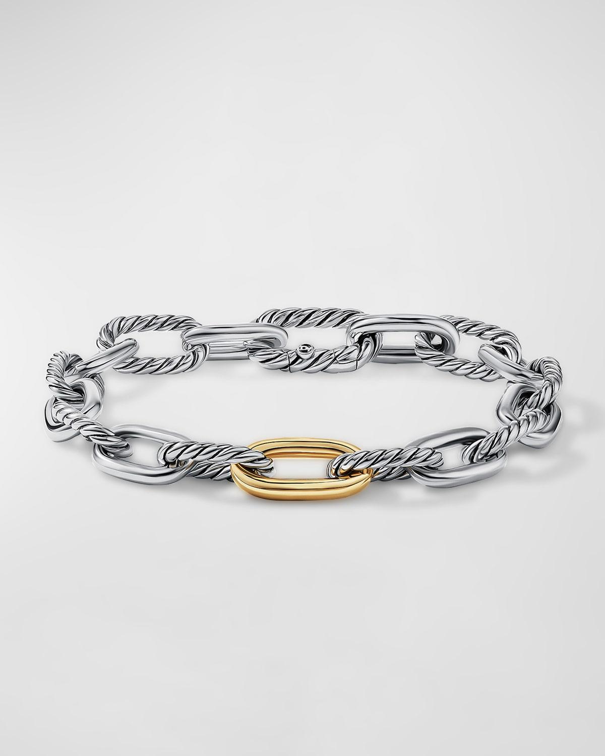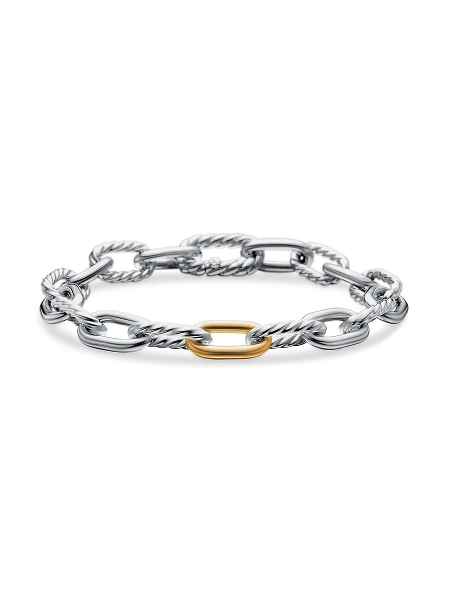 From the DY Madison Collection. Crafted of sterling silver, David Yurmans Madison bracelet is composed of alternating polished and rope-inspired oval links. A single 18K-yellow-gold link adds a contrasting effect to this elegant piece. Sterling silver/18K yellow gold Push clasp Imported SIZE Width, about 8.5mm Extra Small wrist circumference, 5-5.5 (12.7-14cm) Small wrist circumference, 5.5-6.0 (14-15.2cm) Medium wrist circumference, 6.0-6.5 (15.2-16.5cm) Large wrist circumference, 6.5-7.0 (16.5-17.8cm) Extra Large wrist circumference, 7.0-7.5 (17.8-19cm) Please note: If you are between sizes, please opt for the larger size. ABOUT THE BRAND David, a sculptor, and his wife, Sybil, a painter, launched their innovative jewelry brand in 1980 in New York City. Since then, the American design house has pioneered cutting-edge collections - from its iconic combination of sterling silver and diamonds to signature pinky rings. Today, with their son Evan, the Yurmans continue to deliver timeless pieces inspired by nature, art, ancient symbols and Manhattans stunning architecture. Lsd Jewelry - David Yurman > David Yurman > Saks Fifth Avenue > Barneys. David Yurman. Color: Silver. Size: Small.