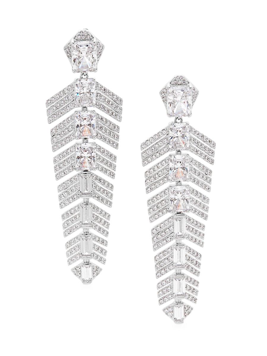 From the Ear Candy Collection. Crafted of rhodium-plated sterling silver, Adriana Orsinis feather drop earrings sparkle with mixed-cut cubic zirconia. Cubic zirconia Rhodium-plated sterling silver Butterfly back Imported SIZE About 0.75W x 2.5L. Fashion Jewelry - Adriana Orsini > Adriana Orsini > Saks Fifth Avenue > Barneys. Adriana Orsini. Color: Silver Crystal.