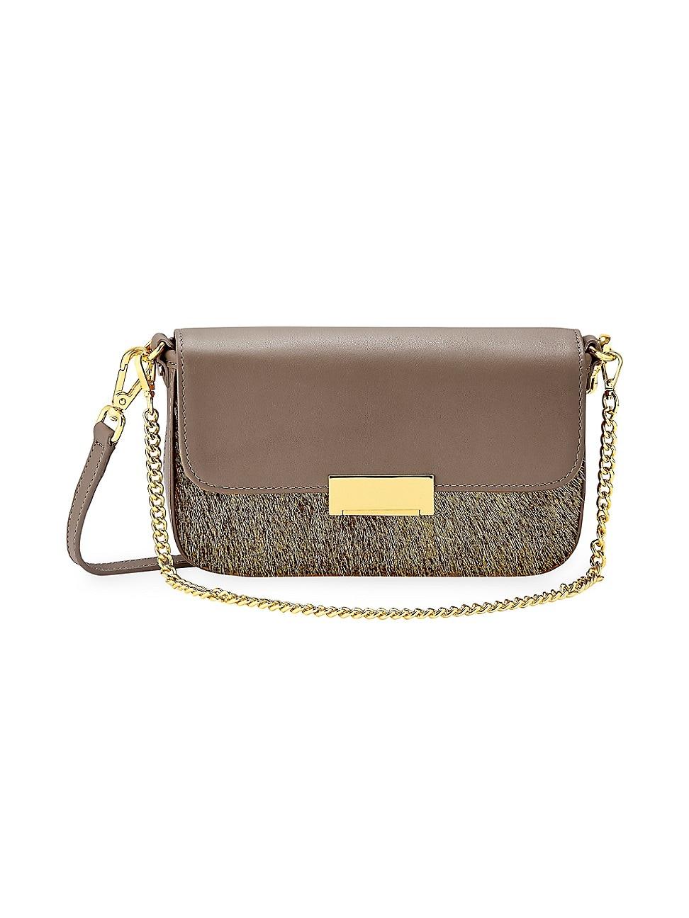 Finished with a removable twisted chain strap, GiGI New Yorks Edie bag is crafted of eye-catching metallic calf hair. Adjustable, removable shoulder strap Interior: one slip pocket Includes dust bag Flap-top closure with lock Calf hair Trim: leather Lining: cotton Fur type: dyed calf hair Fur origin: Brazil Made in USA SIZE About 8.25W x 5.25H x 2D Removable chain strap: about 8.25 drop Adjustable, removable strap: about 16.5-18.5 drop Weight: about 1.25 lbs. Please note: This item ships directly from the vendor and may take up to 14 business days to ship after the order is placed. Handbags - Contemporary Handbags > Gigi New York > Saks Fifth Avenue > Barneys. GiGi New York. Color: Gold.