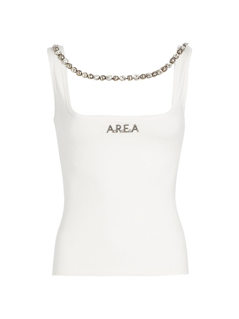 Crafted of stretch cotton, Areas tank top is styled with a crystal chain detail and a silvertone logo at the chest. Square neck, squared back Shoulder straps Straight hem Pulls over 94% cotton/6% elastane Dry clean Made in Italy SIZE & FIT Model measurements: 510 tall Model is wearing a US size 4 ABOUT THE BRAND Founded in 2014 by designers Beckett Fogg and Piotrek Panszczyk in downtown New York City, AREA is a design studio with a bold perspective. The label focuses on innovative embellishments on its playful ready-to-wear and accessories. Infused with energy and eclecticism, AREA is a favorite pick for Hollywood starlets. Advanced European - Italian Collections > Area > Saks Fifth Avenue > Barneys. Area. Color: Whipped White. Size: XL.