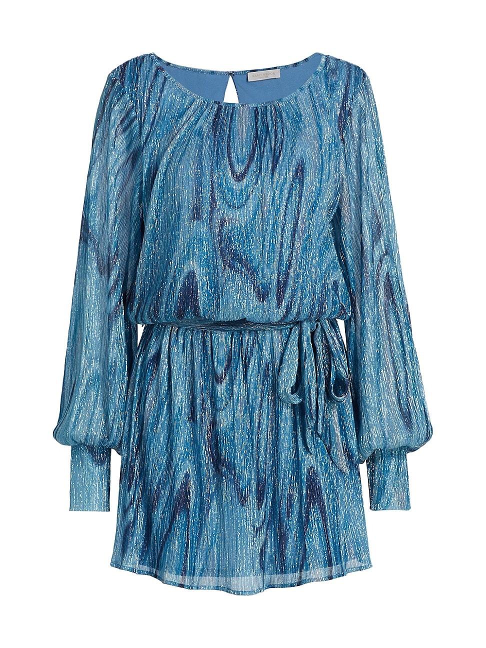 Swirling with an abstract print, Ramy Brooks Emberyly minidress flaunts a shiny metallic weave. This billowy style features long blouson sleeves and a self-tie belt. Boatneck Long blouson sleeves, tapered cuffs Self-tie waist Back button keyhole closure 50% polyester/50% metallic yarn Lining: 100% polyester Machine wash Imported SIZE & FIT About 33 from shoulder to hem Model measurements: 510 tall Model is wearing a US size Small. Contemporary Sportswear - Contemporary Collections > Ramy Brook > Saks Fifth Avenue > Barneys. Ramy Brook. Color: Calypso Blue Lurex Swirl Knit. Size: XXL.