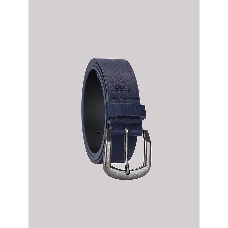 Find your flowers with this classic belt. Cinched to perfection, this belt comes with a subtle floral pattern lightly embossed into the vegan leather. Designed with a 35 mm indention, this belt fits right into the loops of your favorite jeans. 100% Polyurethane. Navy. L.