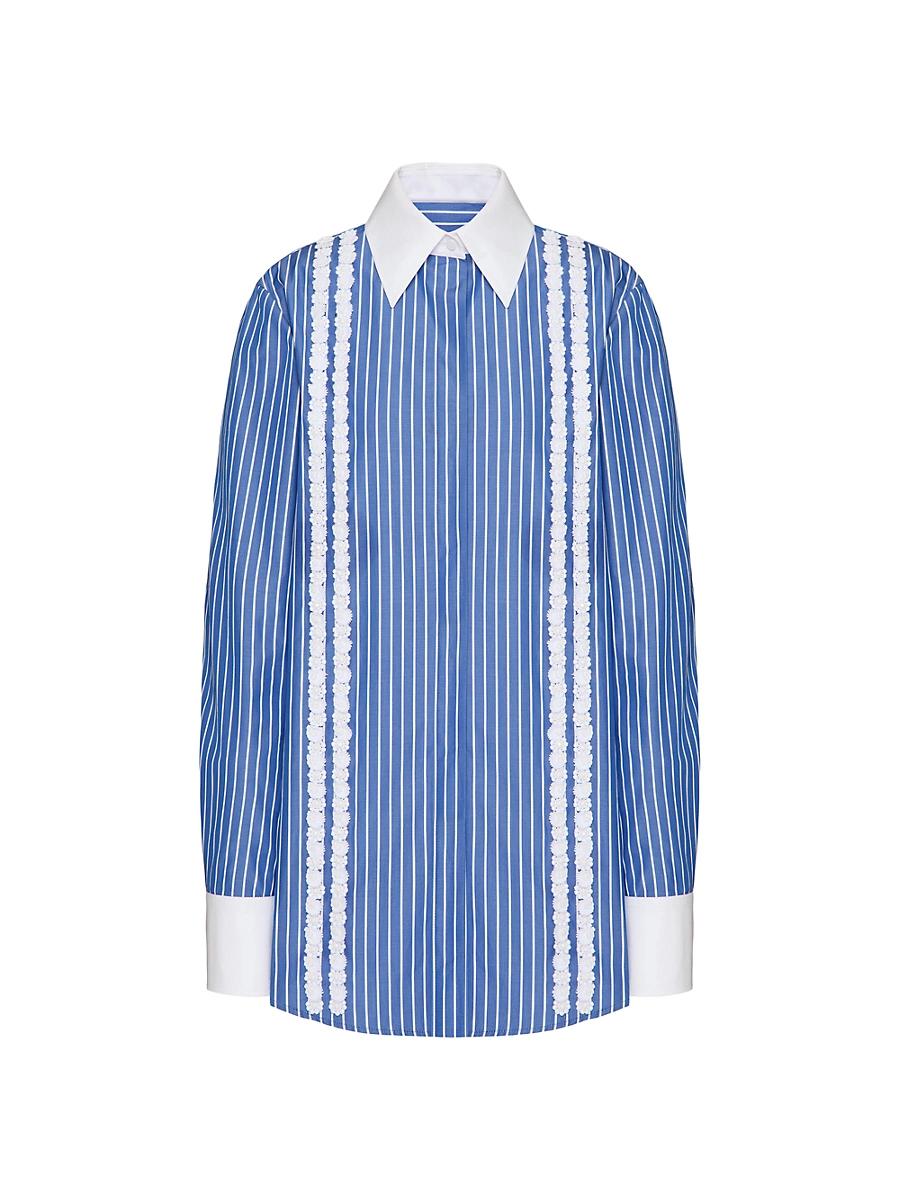 Embroidered contrails poplin shirt. Front fastening with concealed buttons Poplin Contrails (100% Cotton) Unlined Length: 75 cm / 29.5 in. from the shoulders in an Italian size 40 Sleeve length: 83 cm / 32.6 in. from the center back in an Italian size 40 The model is 176 cm / 59 tall and wears an Italian size 40 Made in Italy. Lsd Rtw - Valentino Rtw > Valentino Garavani > Saks Fifth Avenue > Barneys. Valentino Garavani. Color: Light Blue White. Size: 2.