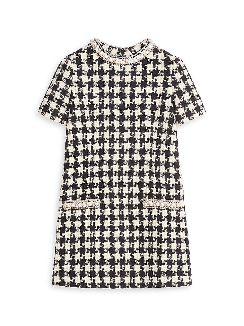 Embroidered Damier light tweed short dress. Embroidered stones and micro elements on neckline and pockets Back zipper and hook-and-eye closure Damier Light Tweed (40% Acrylic, 37% Virgin Wool, 19% Cotton, 4% Polyamide) Habotai lining (100% Silk) Length: 85 cm / 33.5 in. from the shoulders in an Italian size 40 Sleeve length: 39.5 cm / 15.6 in. from the center back in an Italian size 40 The model is 176 cm / 59 tall and wears an Italian size 40 Made in Italy. Lsd Rtw - Valentino Rtw > Valentino Garavani > Saks Fifth Avenue > Barneys. Valentino Garavani. Color: Ivory Black. Size: 4.