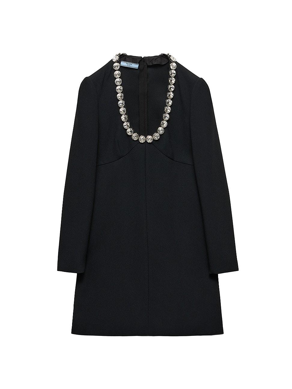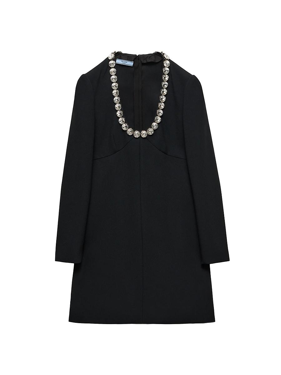Sparkling crystals illuminate this sabl mini dress, an expression of natural elegance. Flared fit Lined Wide neckline Center back zip fastening Long sleeves Metal triangle logo pendant Flared hem Jewelled necklace detail on neckline 70% Acetate 30% Viscose - 60% Crystal 40% Brass Imported. Lsd Rtw - Prada Rtw > Prada > Saks Fifth Avenue > Barneys. Prada. Color: Black. Size: 4.