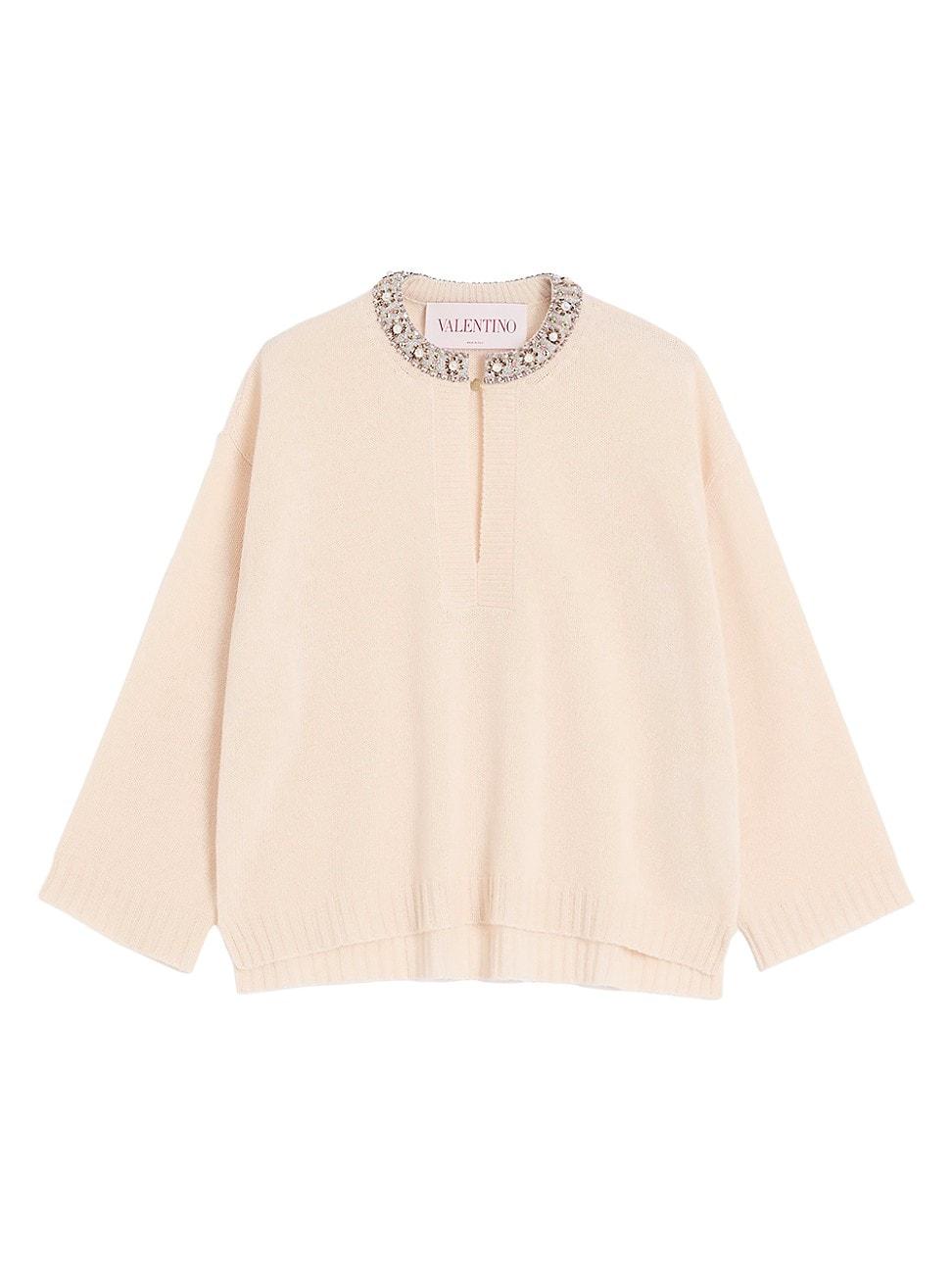 Embroidered wool sweater. Stone and micro element embroidery on neckline Front closure with flower button Wool (100% Virgin Wool) Length: 56 cm / 22 in. from the shoulders in an Italian size S Sleeve length: 67 cm / 26.3 in. from the center back in an Italian size S The model is 176 cm / 59 tall and wears an Italian size S Made in Italy. Lsd Rtw - Valentino Rtw > Valentino Garavani > Saks Fifth Avenue > Barneys. Valentino Garavani. Color: Birch. Size: XS.