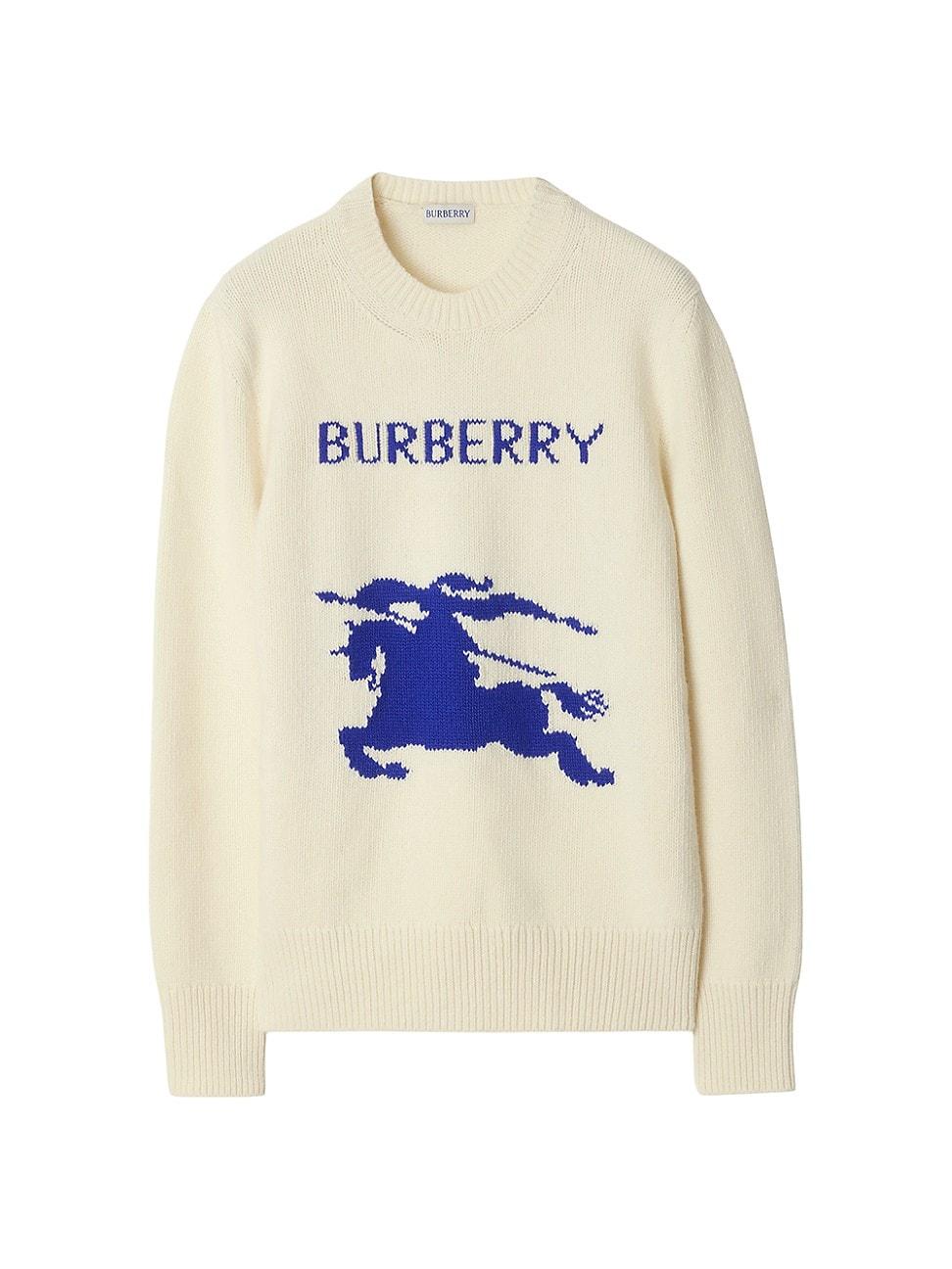 Crafted of a luxe blend of wool and cashmere, Burberrys sweater showcases their signature equestrian knight in a striped intarsia-knit graphic. Crewneck Long sleeves Pulls over 71% wool/29% cashmere Trim: 70% wool/28% cashmere/1% elastane/1% polyamide Dry clean Made in Italy SIZE & FIT About 25.25 from shoulder to hem Model measurements: 510 tall Model is wearing a US size Small ABOUT THE BRAND Founded in 1856 by 21-year-old Thomas Burberry, the brand set out with a mission to stylishly protect against British weather-and Burberrys iconic trench coat was born. In the 1920s, its renowned check pattern was introduced as the coats lining. Today, under Creative Director Daniel Lee, the heritage brand continues to evolve and create timelessly classic mens, womens and kids pieces, along with beauty. Advanced Designer - Burberry > Burberry > Saks Fifth Avenue > Barneys. Burberry. Color: Off White. Size: XXL.