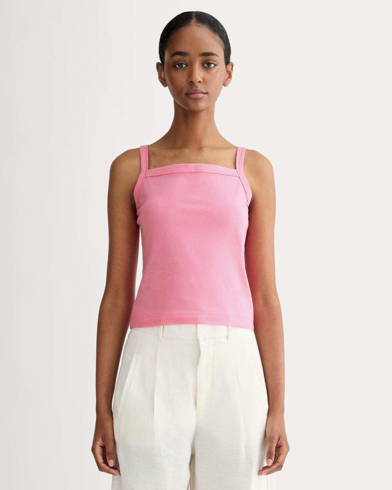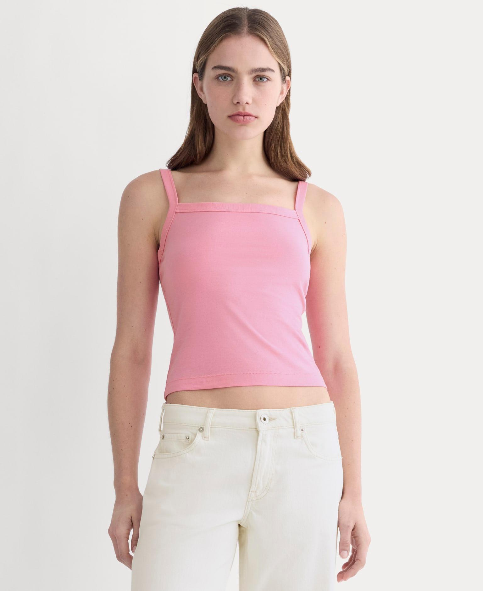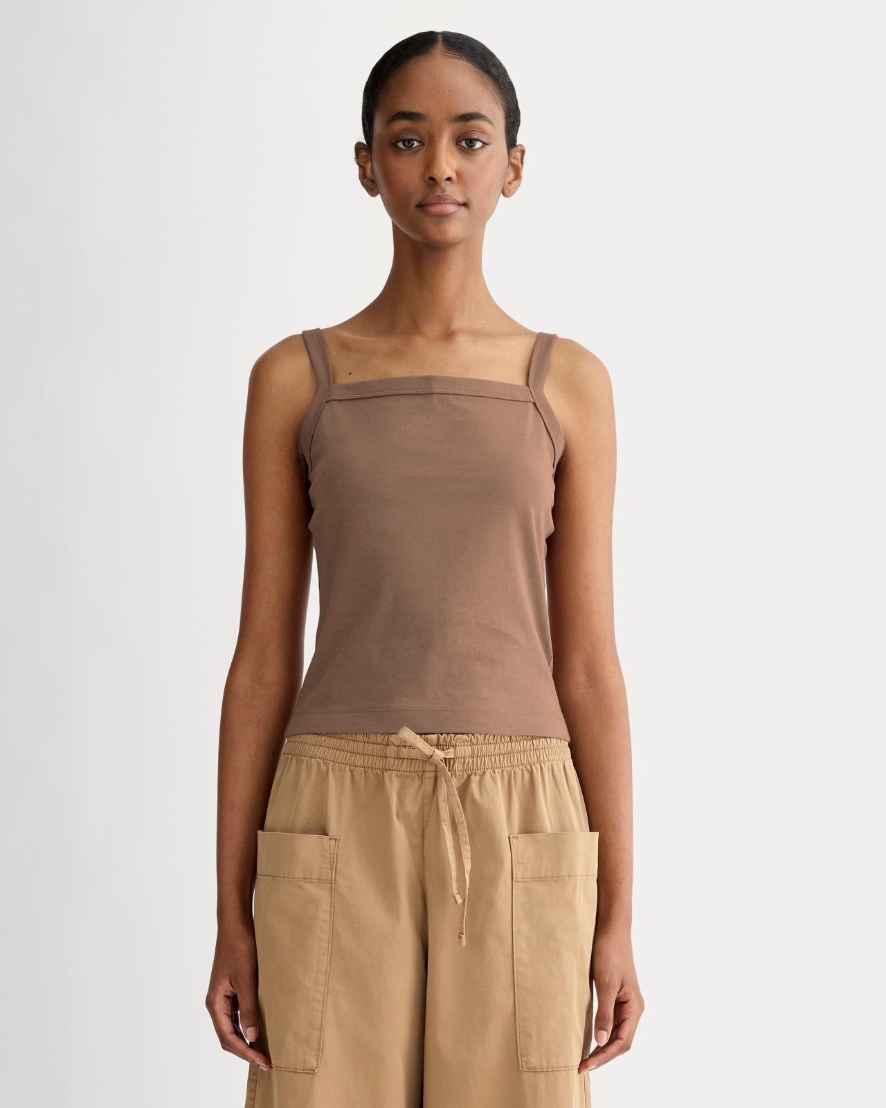 Not just any tank. This slim-fit, square-neck tank has structured yet soft feel. Wide straps keep it bra-friendly, while the just-above-the-hip length makes it perfect for tucking or layering. Made with organic cotton. Wear it on repeat—we won't judge.