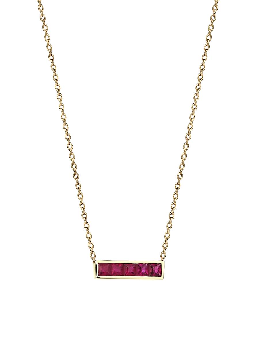 From the Essentials collection. The Bar necklace by SIM and ROZ is accented with a bright ruby bar in a sleek design. Ruby, 0.59 tcw 14K yellow gold Lobster clasp Imported. Fashion Jewelry - Semi Prec Coll C > Sim And Roz > Saks Fifth Avenue > Barneys. Sim and Roz. Color: Red.
