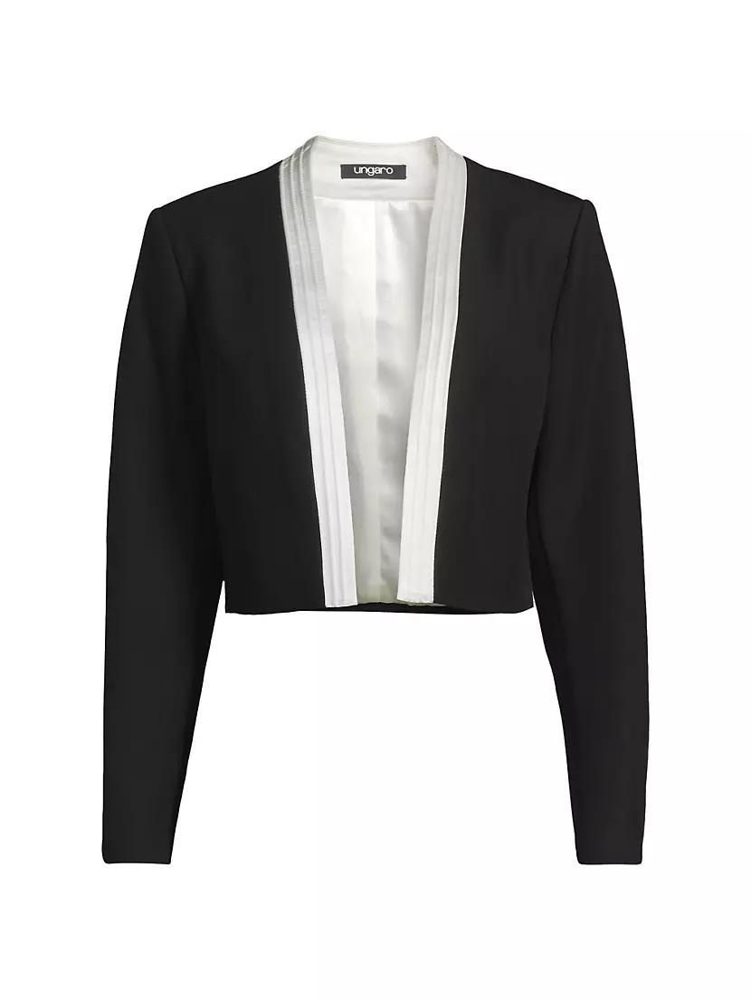 The Eve jacket from Ungaro is cut in a cropped silhouette with a deep V-neck and contrast trim. Shawl collar V-neck Long sleeves Slips on 51% rayon/42% nylon/7% elastane Lining: 97% polyester/3% spandex Dry clean Imported SIZE & FIT About 18.25 from shoulder to hem Model measurements: 510 tall Model is wearing a US size Small. Modern Collections - Branded Separates > Ungaro > Saks Fifth Avenue > Barneys. Ungaro. Color: Black Ivory. Size: XS.