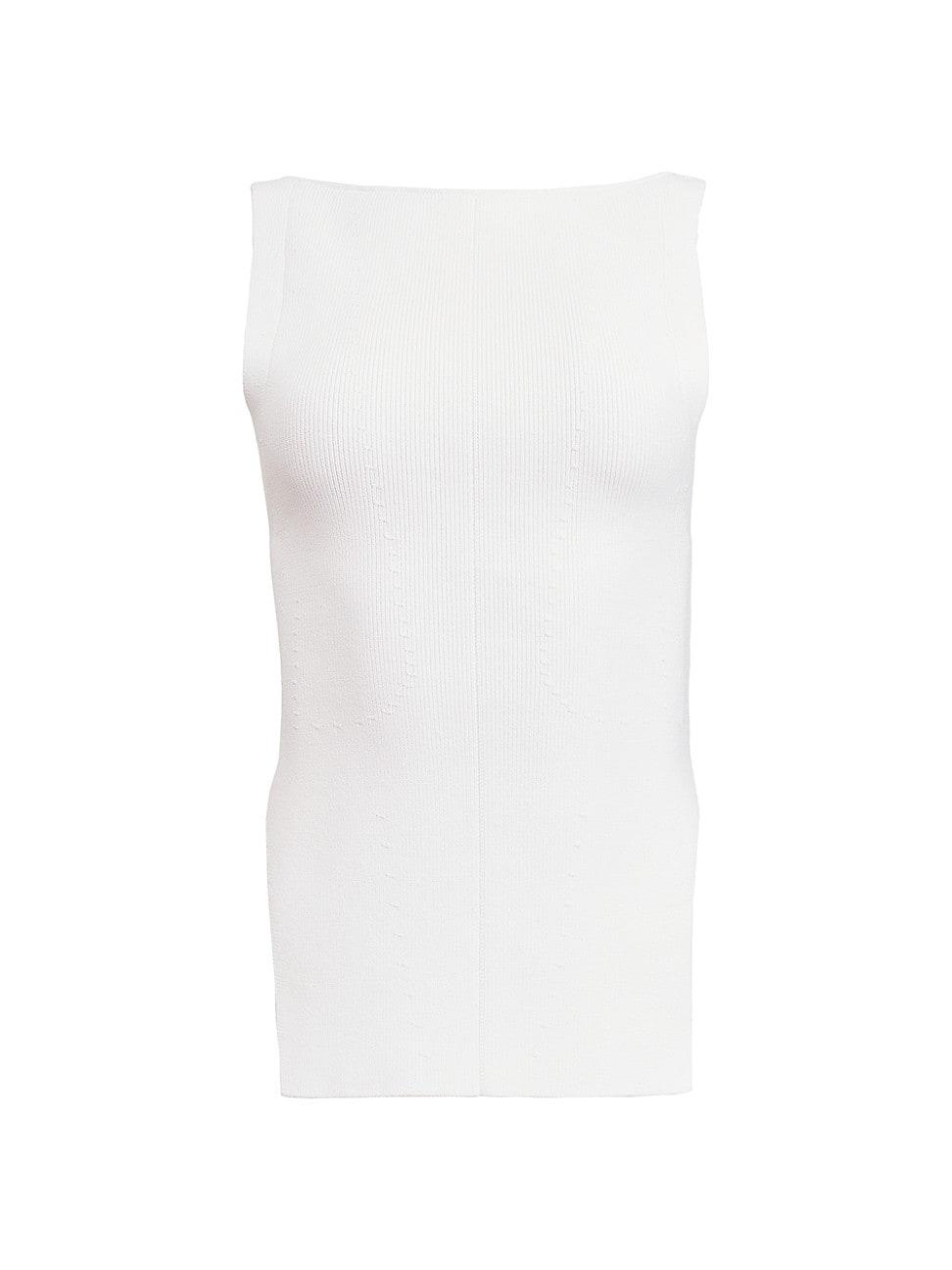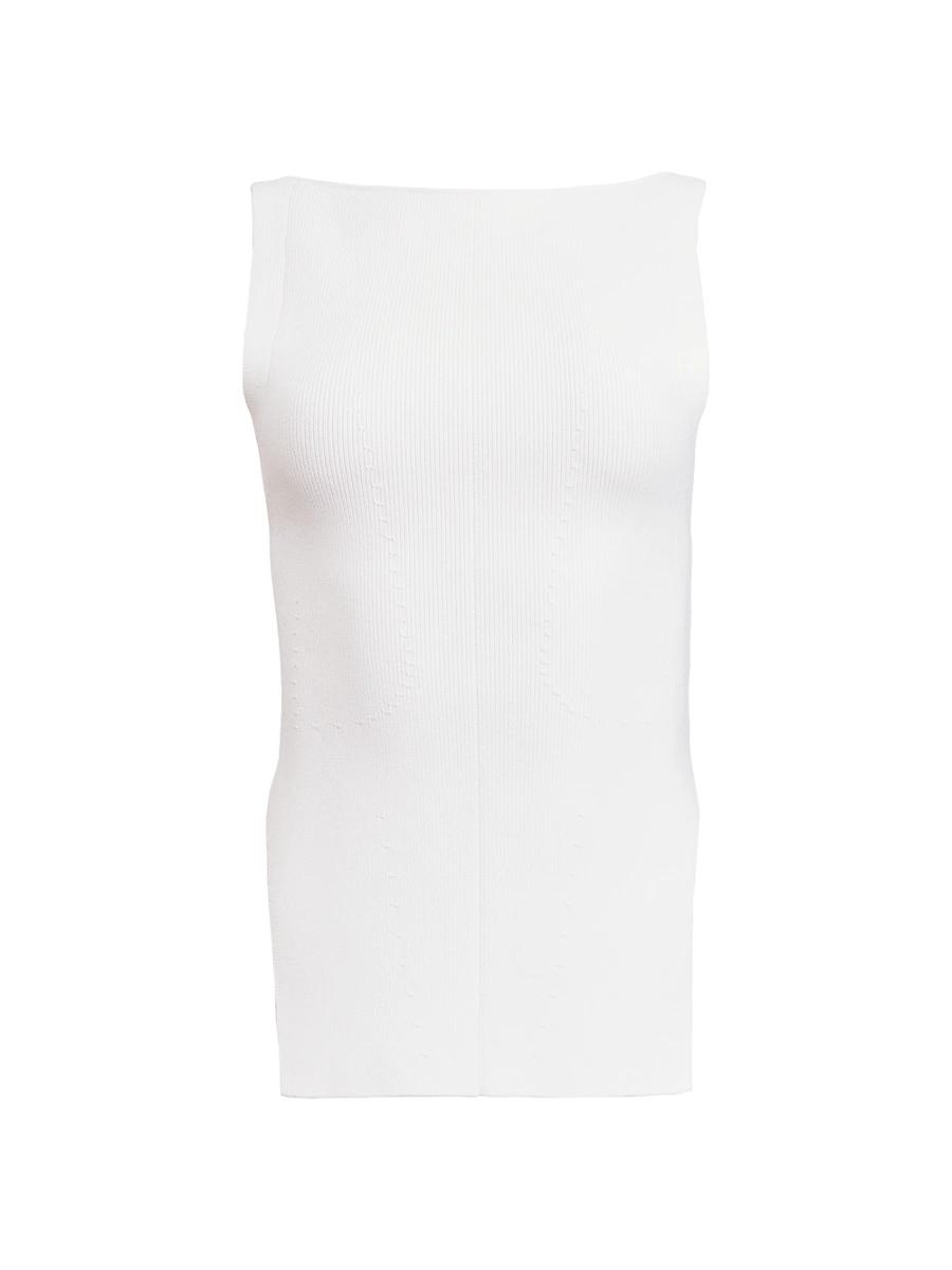 Khaites Evelyn top is crafted of a rib-knit stretch blend in a sleeveless, fitted silhouette. Exaggerated side slits and a boat neck define this longline style. Boat neck Sleeveless Side slits Pulls on 75% viscose/15% polyester/9% polyamide/1% elastane Dry clean Made in Italy SIZE & FIT Model measurements: 510 tall Model is wearing a US size Small. Designer Lifestyle - Khaite > Khaite > Saks Fifth Avenue > Barneys. Khaite. Color: Glaze. Size: Small.