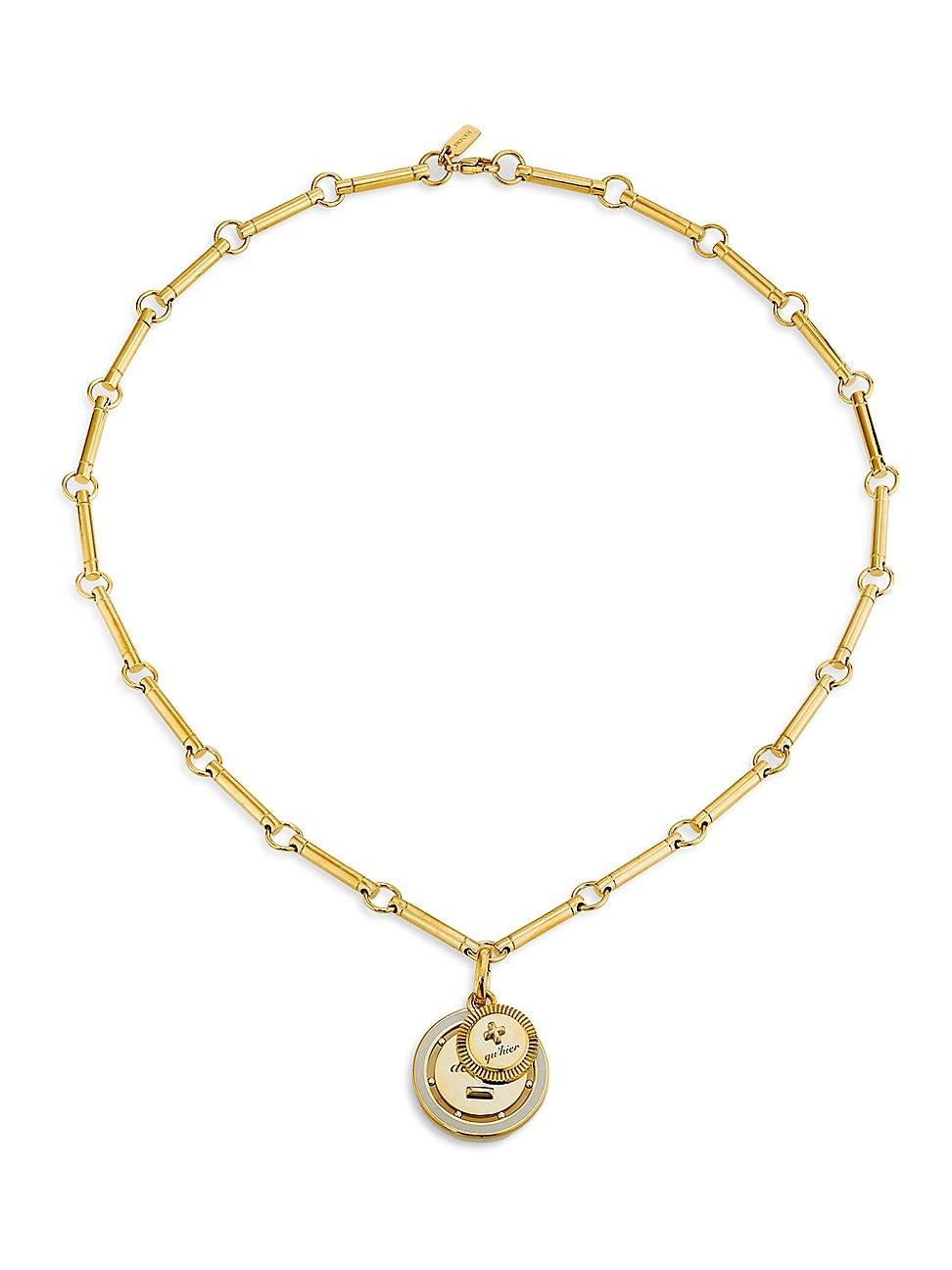 Crafted of 18K yellow gold and cream ceramic, this Ever Growing - Vivacity: Element Chain necklace from Foundrae features two medallions of varying sizes inscribed with a couplet from the classic French love poem, Lternelle Chanson by Rosemonde Grard. Ceramic 18K yellow gold Lobster clasp Made in USA SIZE Adjustable chain: about 16L Small medallion: about 0.47 diameter Large medallion: about 0.78 diameter ABOUT THE BRAND Foundrae takes inspiration from mythology and classical design to create elevated-yet-approachable necklaces, bracelets, rings and more-all in 18-karat gold. The fine jewelry label is known for its use of ancient symbols in its signature coin-like pendants, which blend a bold look with second-skin comfort. Each piece is a collectible in its own right and serves as an expression of personal identity. Fine Jewelry - Designer Jewelry A > Foundrae > Saks Fifth Avenue > Barneys. Foundrae. Color: Yellow Gold.