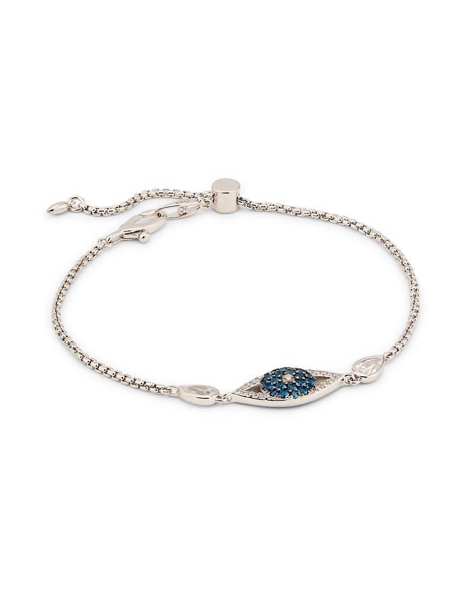 This Adriana Orsini bracelet features an evil eye detail at the front and fastens with a lobster clasp and slider. Lobster clasp with slider Nano stone 18k gold-plated 18k gold, ruthenium-plated sterling silver, ruthenium-plated rhodium, or ruthenium-plated sterling silver Imported SIZE Length, about 8. Fashion Jewelry - Adriana Orsini > Adriana Orsini > Saks Fifth Avenue > Barneys. Adriana Orsini. Color: Rhodium.