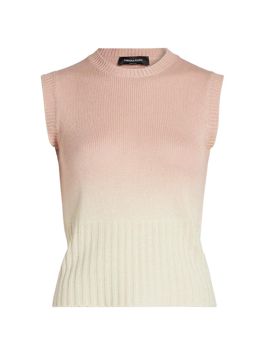 Crafted of soft virgin wool, Fabiana Fillippis faded ombr cropped vest showcases a crewneck and a sleeveless silhouette. Crewneck Sleeveless Rib-knit trim Pulls over 75% virgin wool/15% silk/10% cashmere Hand wash Made in Italy SIZE & FIT Model measurements: 510 tall Model is wearing a US size 4. Designer Lifestyle - Fabiana Filippi > Fabiana Filippi > Saks Fifth Avenue > Barneys. Fabiana Filippi. Color: Fard. Size: 4.
