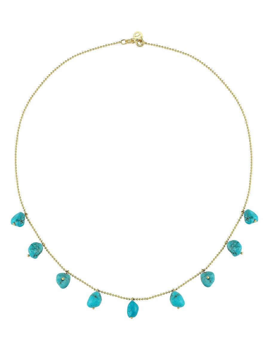 From the Fallen Sky Collection. Crafted of 14K yellow gold, this necklace from Charms Company features dangling turquoise suspended from a fine ball chain. Turquoise 14K yellow gold Lobster clasp Imported SIZE Chain: adjustable 16.5-17.7L. Fashion Jewelry - Semi Prec Coll C > Charms Company > Saks Fifth Avenue > Barneys. Charms Company. Color: Turquoise.