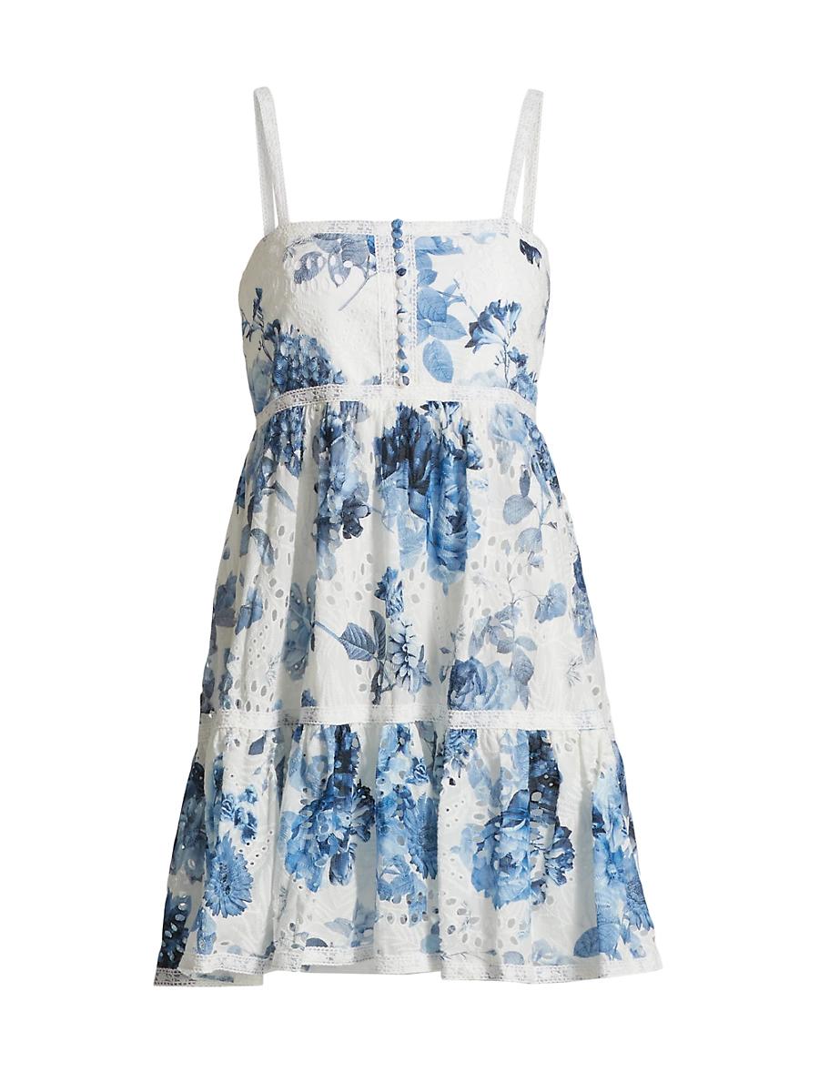 Crafted of cotton, the Fallon babydoll minidress byAlice + Olivia blooms with a floral print featuring an eyelet design. Squareneck Sleeveless Back zip closure 100% cotton Dry clean Imported SIZE & FIT About 33 from shoulder to hem Model measurements: 510 tall Model is wearing a US size Small ABOUT THE BRAND Founder Stacey Bendet has been embracing bold color, eclectic prints and an overall passion for whimsy since launching Alice + Olivia in 2002. From party-ready dresses to statement tops and everything in between, shes created a playful and overtly feminine aesthetic thats uniquely her own. Contemporary Sportswear - Alice + Olivia > Alice + Olivia > Saks Fifth Avenue > Barneys. Alice + Olivia. Color: Affection Small. Size: 2.