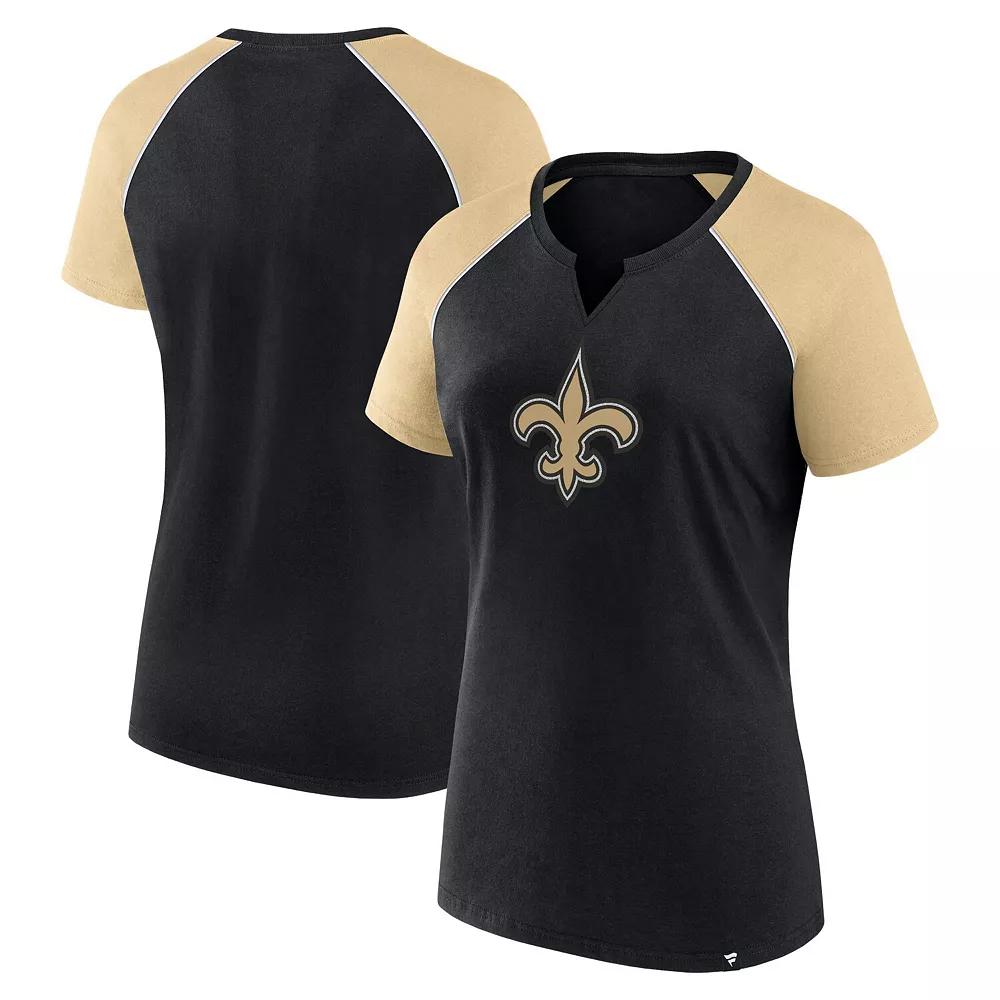 Shine bright on game day with this New Orleans Saints Glittered Primary Raglan T-Shirt from Fanatics. This stylish tee features raglan sleeves in a contrasting team color, offering both a fashionable look and more flexible movement. The notch neck adds a touch of modern style, while the classic fit ensures a comfortable and flattering look for any New Orleans Saints fan.Shine bright on game day with this New Orleans Saints Glittered Primary Raglan T-Shirt from Fanatics. This stylish tee features raglan sleeves in a contrasting team color, offering both a fashionable look and more flexible movement. The notch neck adds a touch of modern style, while the classic fit ensures a comfortable and flattering look for any New Orleans Saints fan.PRODUCT FEATURESMachine wash, tumble dry lowImportedTeam logo printed in a glittery design at center frontClassic fitShort sleeveRaglan sleeves in a contrasting team color provide more flexible movementNotch neck adds a fashionable touchNotch neckMaterial: 60% Cotton/40% ModalBrand: FanaticsOfficially licensed Color: Black. Gender: female. Age Group: adult.