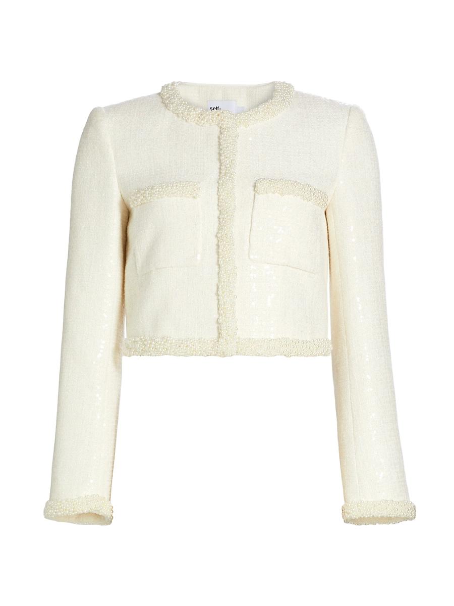 This Self Portrait jacket is crafted of a luxe boucl and trimmed with faux-pearl beading. Round neck Long sleeves Front patch pockets Button-front closure 59% acrylic/31% polyester/10% polyamide Lining: 100% cupro Dry clean Imported SIZE & FIT About 18.5 from shoulder to hem Model measurements: 510 tall Model is wearing a US size 4 ABOUT THE BRAND Self-Portrait was founded in 2013 by Malaysian designer Han Chong, a Central Saint Martins graduate. The contemporary London-based label, often spotted on the red carpet, features easy evening pieces with signature details like eyelet lace, ruffles and sheer panels. Contemporary Sportswear - Contemporary Collections > Self-portrait > Saks Fifth Avenue > Barneys. Self-Portrait. Color: Cream. Size: 12.