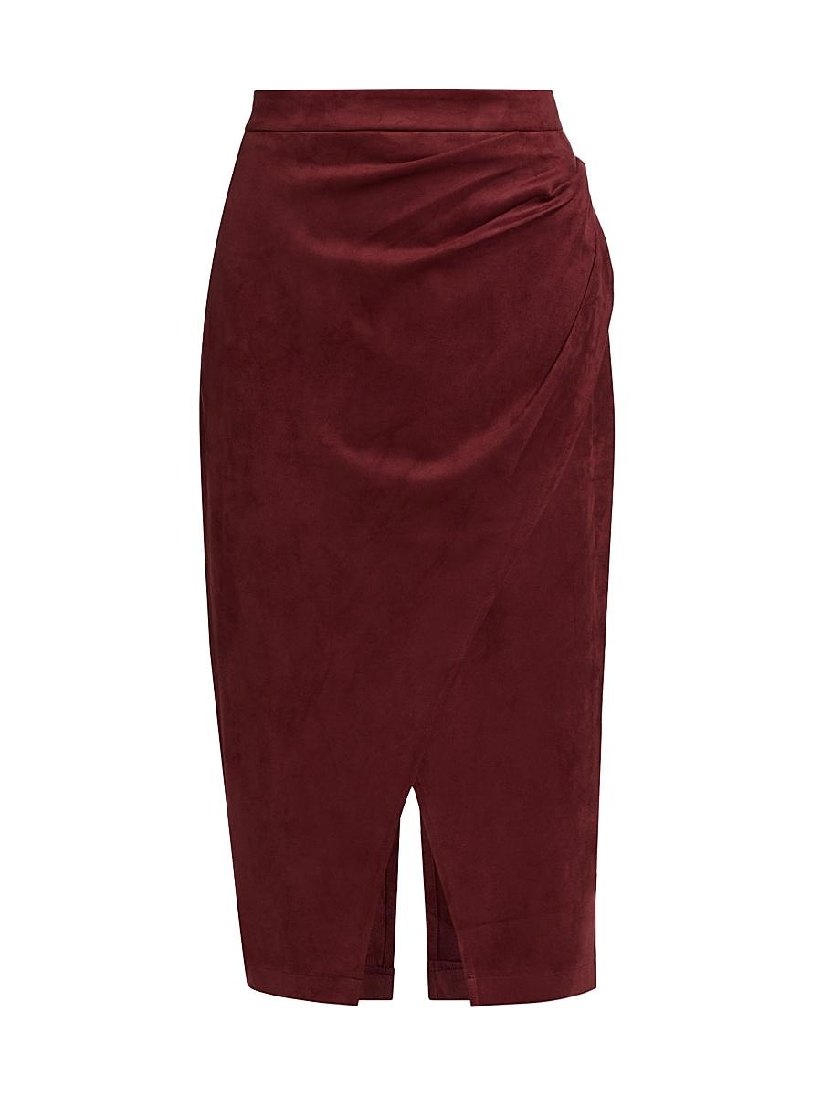 ONLY AT SAKS. Elie Taharis midi-skirt is crafted of double-faced faux-suede and features a wrap silhouette. Front and back skirt slits complete the look. Side-zip closure 88% polyester/12% spandex Machine wash Imported SIZE & FIT About 31 long Model measurements: 510 tall Model is wearing a US size 4. Modern Collections - Elie Tahari > Elie Tahari > Saks Fifth Avenue > Barneys. Elie Tahari. Color: Black Cherry. Size: 12.
