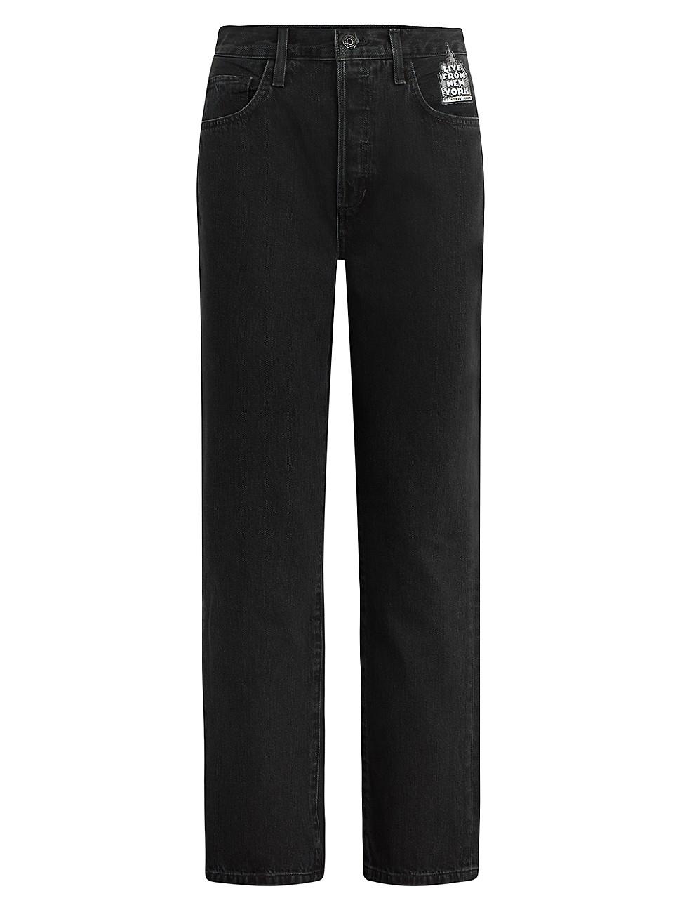 To honor SNLs 50th anniversary, this Favorite Daughter x SNL collection showcases classic silhouettes detailed with New York patches and graphics. Crafted of a cotton blend, the Otto jeans flaunt a five-pocket style and are embellished with a Live From New York patch at the left hip. At the back, SNLs block lettering and the Favorite Daughter logo embroidery detail the right side. Five-pocket style Zip fly, button closure 76% cotton/24% lyocell Machine wash Imported SIZE Rise: about 12 Inseam: about 28.5 Leg opening: about 16. Contemporary Sportswear - Casual Separates > Favorite Daughter > Saks Fifth Avenue > Barneys. Favorite Daughter. Color: Asphalt. Size: 25.