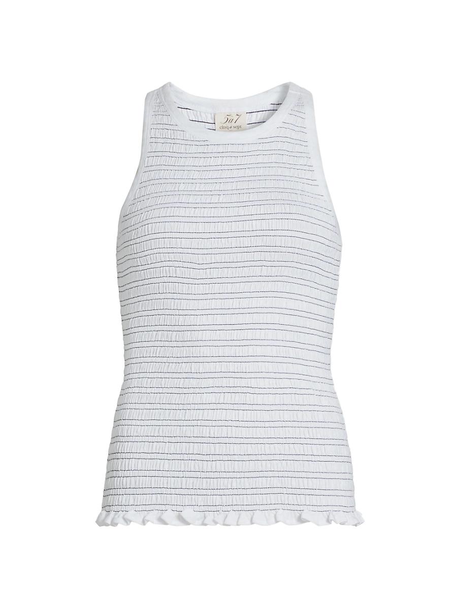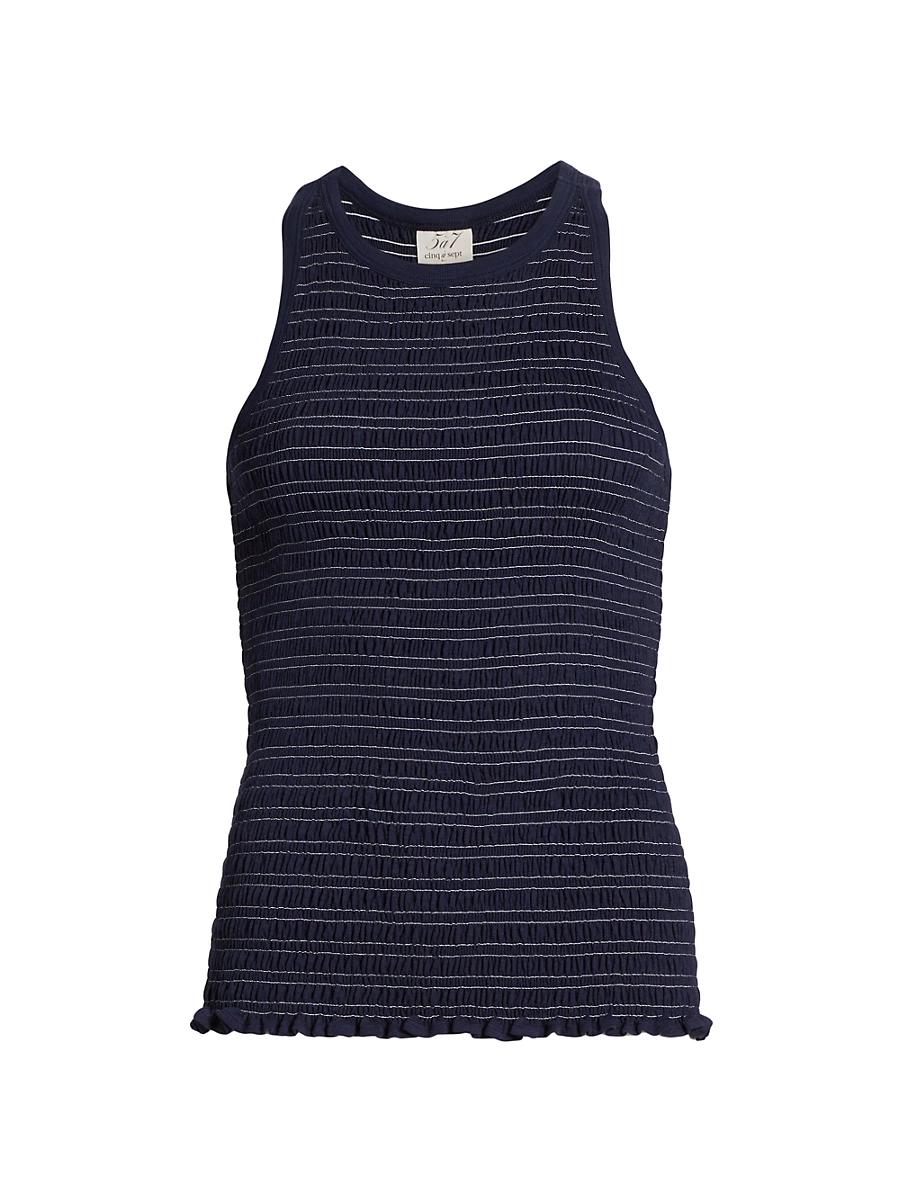 Finished in a smocked design, Cinq Septs Fawn top showcases a crewneck and sleeveless cut. Crewneck Sleeveless Pulls over 100% cotton Dry clean Imported SIZE & FIT About 21.5 from shoulder to hem Model measurements: 510 tall Model is wearing a US size Small ABOUT THE BRAND Inspired by the radiant, magical hours between 5 and 7 PM-which is what the labels French name translates to-founder Jane Siskin designs sophisticated, feminine pieces for both workweek and the weekend. The designers silhouettes also play with volume and eye-catching trimmings-perfect for cocktails or a special night out. Contemporary Sportswear - Denim And Bottoms > Cinq Sept > Saks Fifth Avenue > Barneys. Cinq Sept. Color: Navy White. Size: Small.