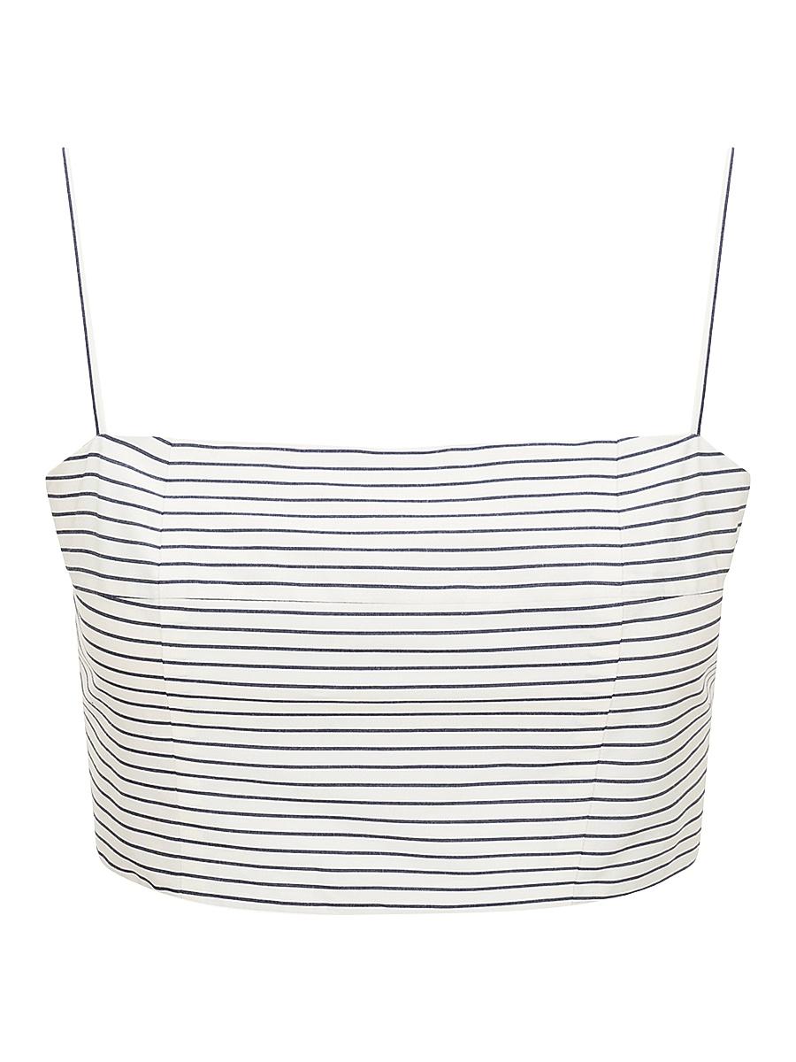 Crafted of a striped stretch cotton, this cropped Frederic top from Staud features a square neck, spaghetti straps, and a back zip closure. Square neck Spaghetti straps Straight hem Back zip closure 98% cotton/2% elastane Dry Clean Imported SIZE & FIT About 15.5 from shoulder to hem Model measurements: 510 tall Model is wearing a US size 4. Contemporary Sportswear - Contemporary Collections > Staud > Saks Fifth Avenue > Barneys. Staud. Color: Ivory Micro Stripe. Size: XS.